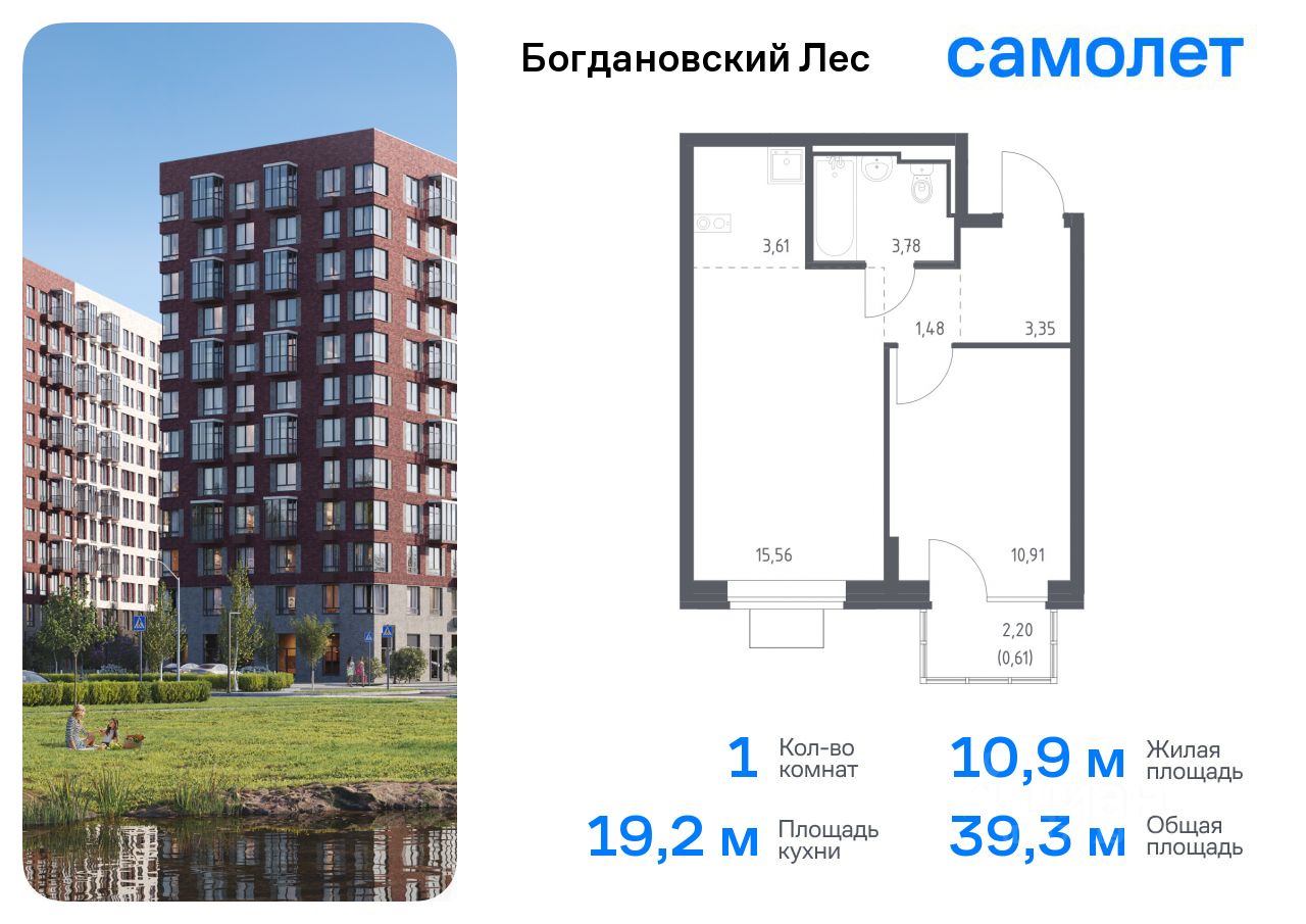 Предлагается 1-комнатная квартира комфорт-класса 39,3 кв.м в корпусе 7.3 на 10 этаже, в ЖК ''Богдановский Лес'' Квартира без отделки. Доступность опции ''отделка'' и возможность комплектации мебелью и декором уточняйте у застройщика.