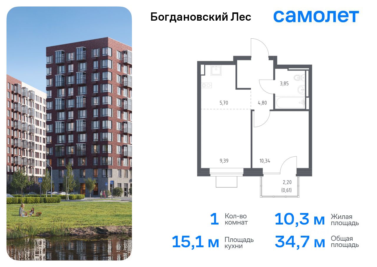 продам 1-к, Богдановский Лес ЖК, 7.34 830 659 ₽