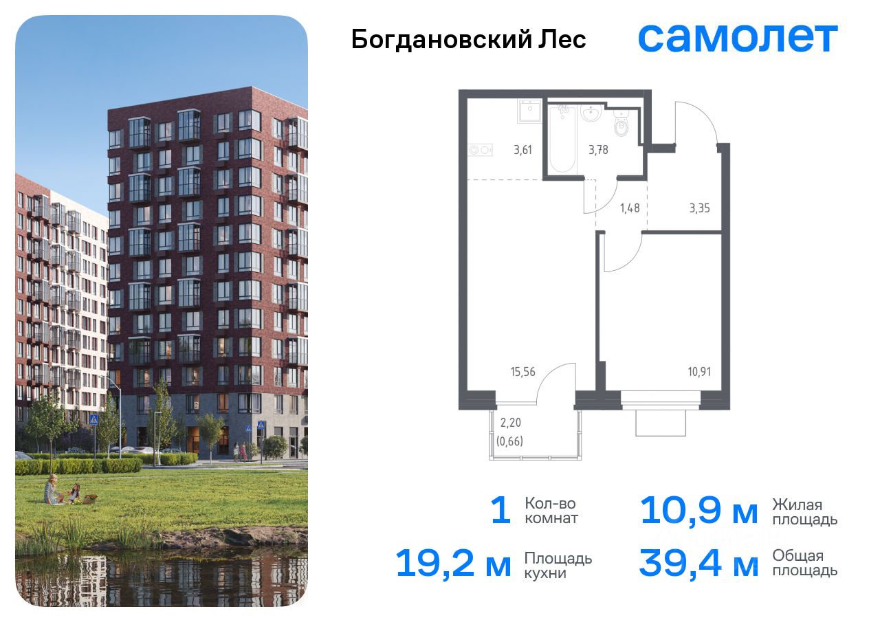Предлагается 1-комнатная квартира комфорт-класса 39,35 кв.м в корпусе 7.1 на 10 этаже, в ЖК ''Богдановский Лес'' Квартира без отделки. Доступность опции ''отделка'' и возможность комплектации мебелью и декором уточняйте у застройщика.