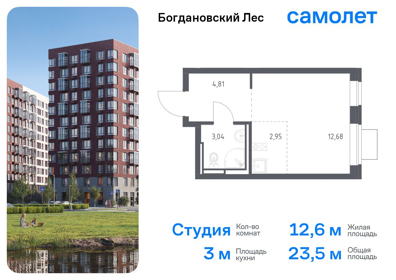 Предлагается квартира студия комфорт-класса 23,48 кв.м в корпусе 7.4 на 12 этаже, в ЖК ''Богдановский Лес'' Квартира с чистовой отделкой. Доступность дополнительных опций уточняйте у застройщика.