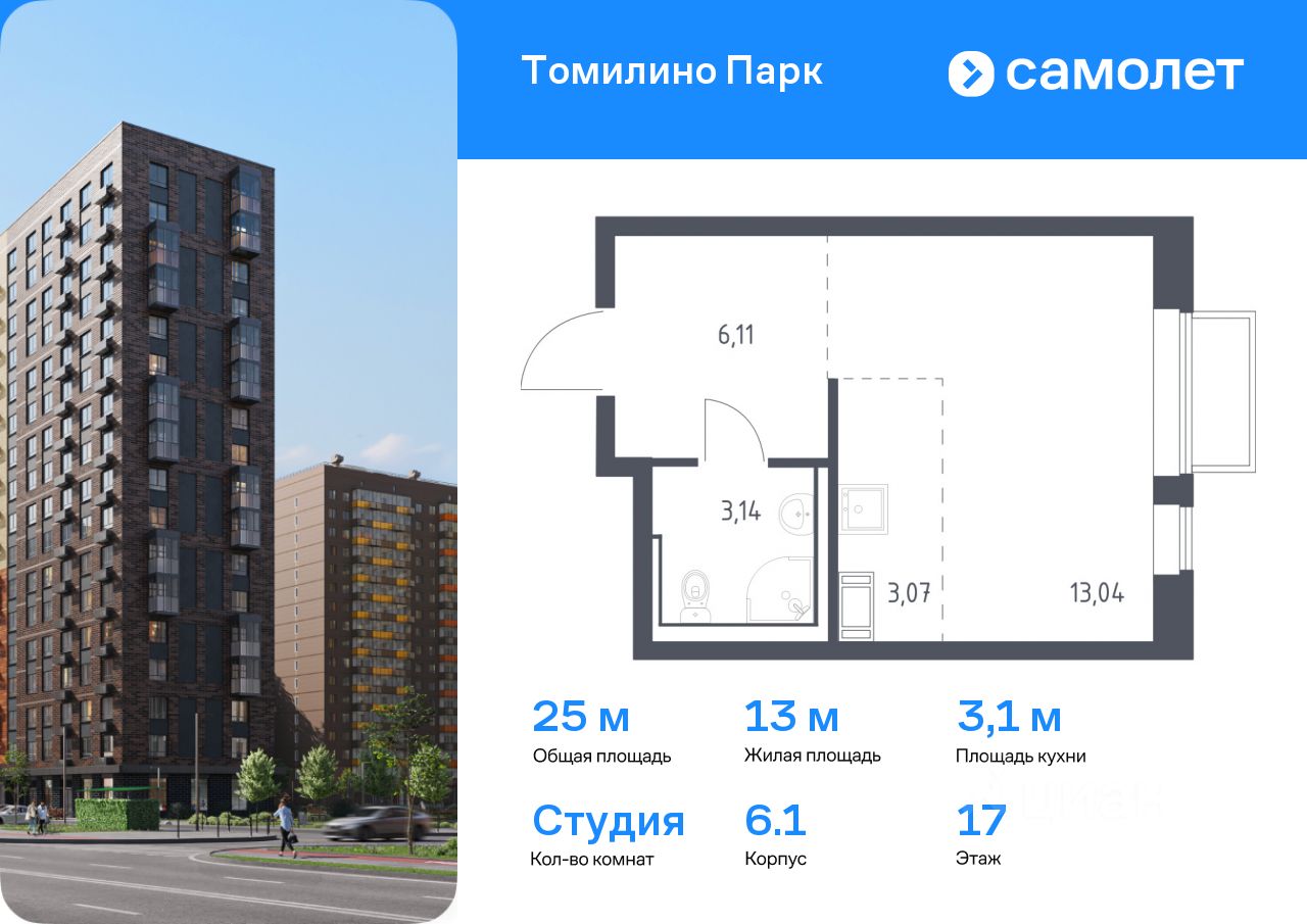 Предлагается квартира студия комфорт-класса 25 кв.м в корпусе 6.1 на 17 этаже, в ЖК ''Томилино Парк'' Квартира с предчистовой отделкой. Доступность дополнительных опций уточняйте у застройщика.