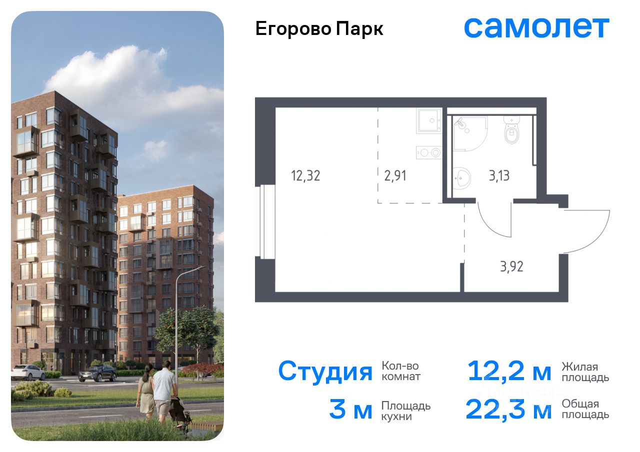 Предлагается квартира студия комфорт-класса 22,28 кв.м в корпусе 3.1 на 9 этаже, в ЖК ''Егорово Парк''