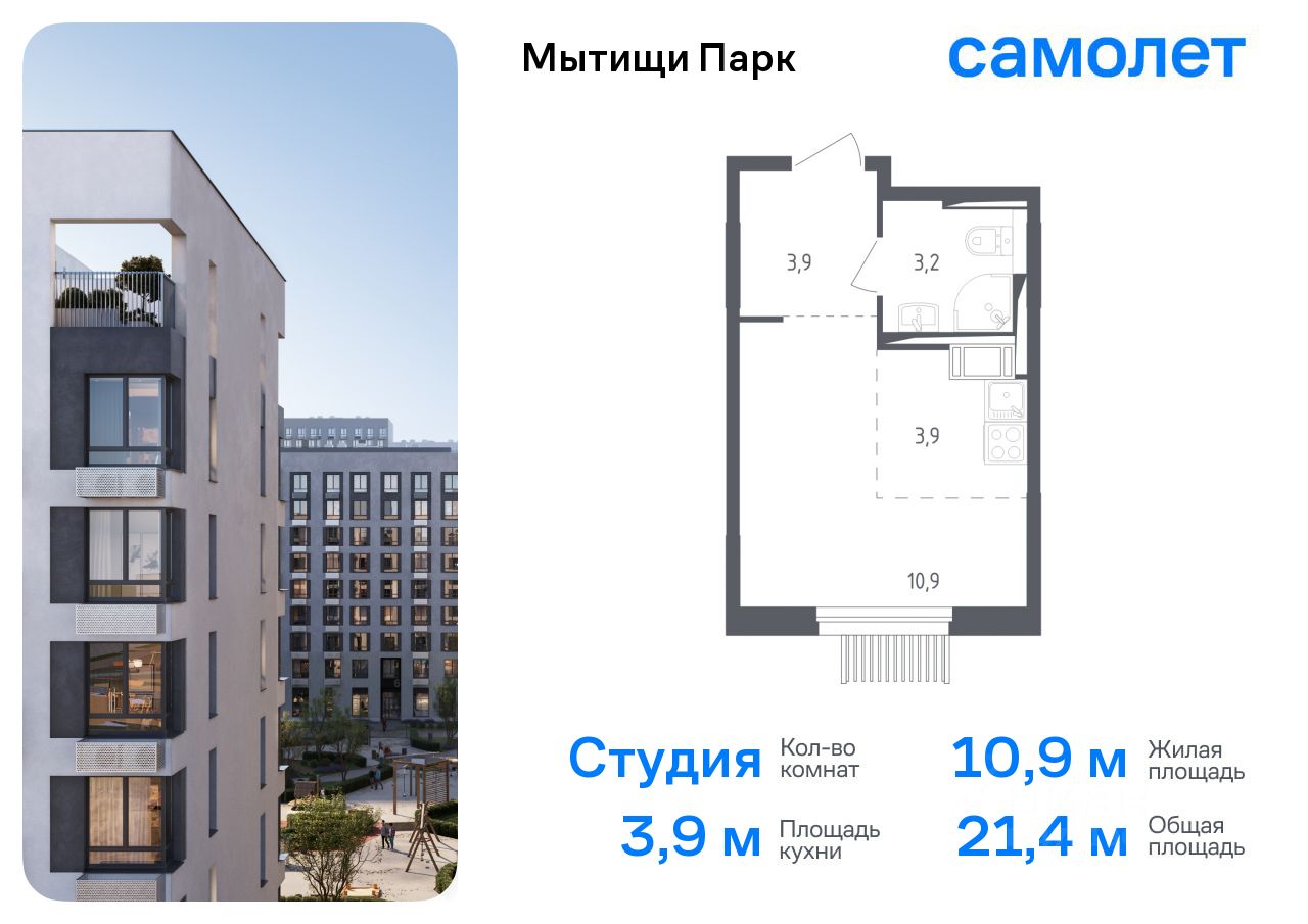 Предлагается квартира студия комфорт-класса 21,4 кв.м в корпусе 4 на 3 этаже, в ЖК ''Мытищи Парк'' Квартира с чистовой отделкой. Доступность дополнительных опций уточняйте у застройщика.