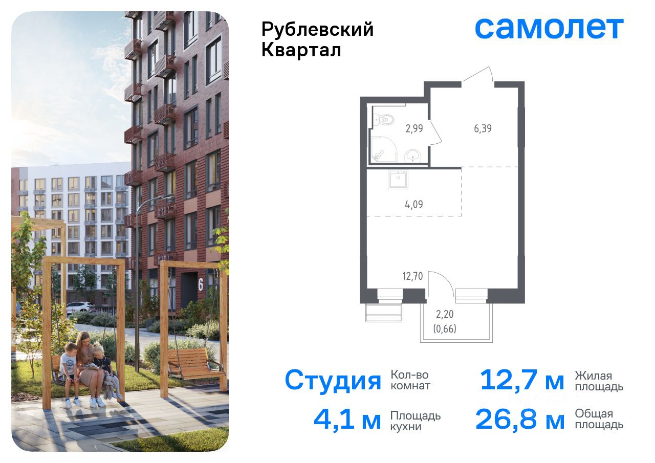 Предлагается квартира студия комфорт-класса 26,83 кв.м в корпусе 55 на 4 этаже, в ЖК ''Рублевский Квартал'' Квартира с чистовой отделкой. Доступность дополнительных опций уточняйте у застройщика.