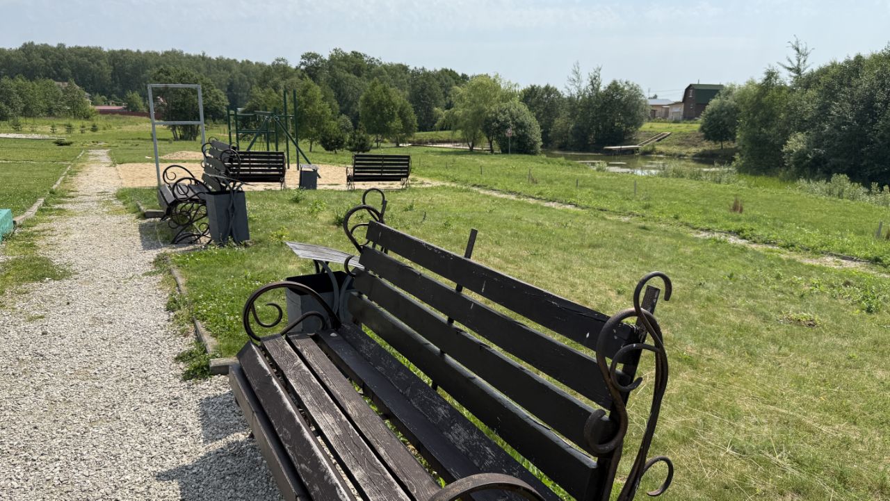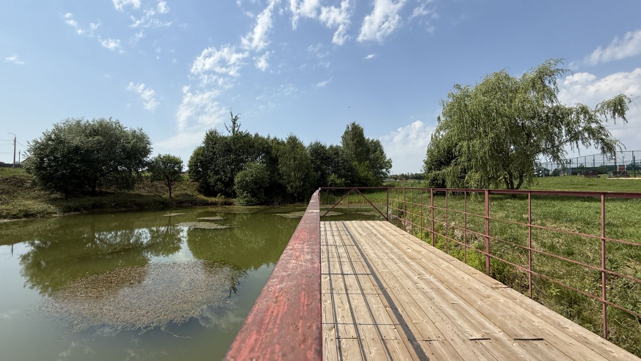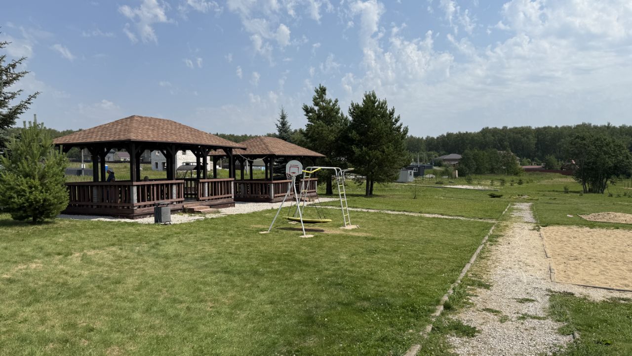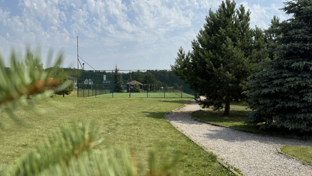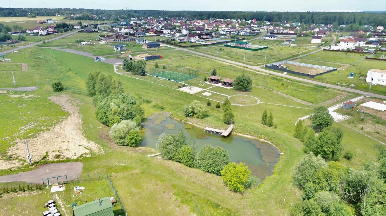 Въезд через КПП с охраной и круглосуточным видеонаблюдением. На территории детская и спортивная площадка, зона барбекю. Так же благоустроен пруд недалеко от участка.