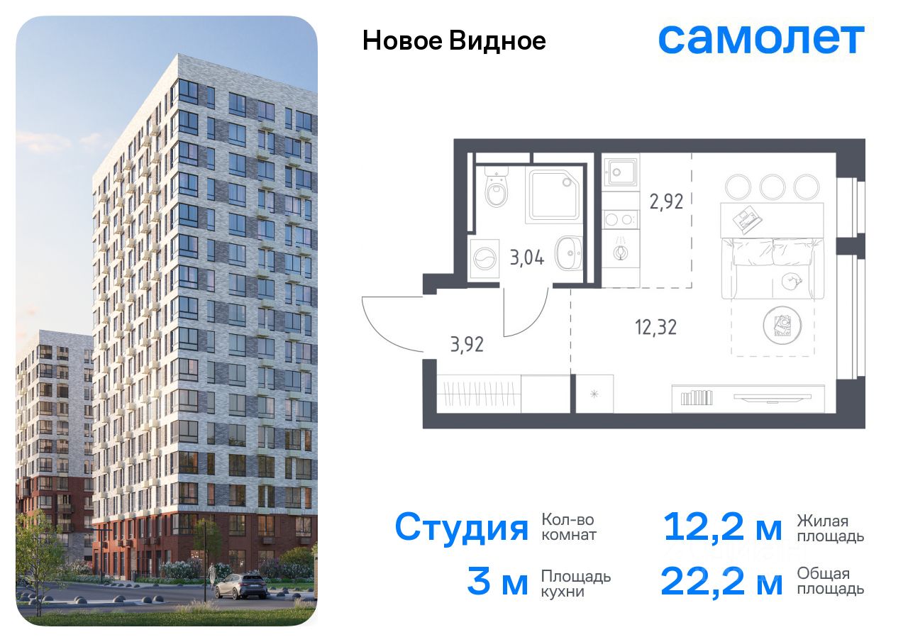 Предлагается квартира студия комфорт-класса 22,2 кв.м в корпусе 16.2 на 7 этаже, в ЖК ''Новое Видное'' Квартира с чистовой отделкой. Доступность дополнительных опций уточняйте у застройщика.