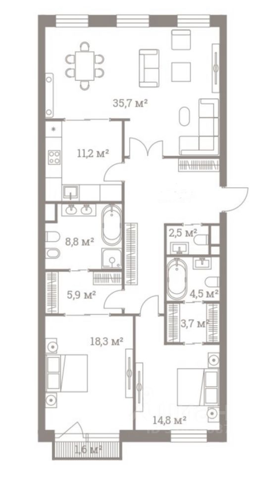 Предлагается шикарная 3-х комнатная квартира в жилом комплексе премиум-класса ''Полянка 44''
