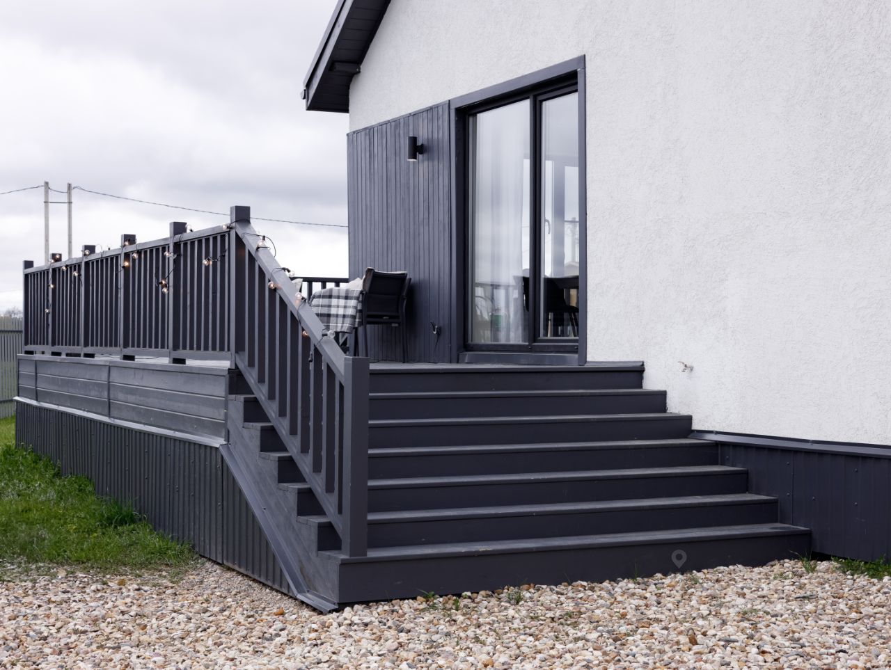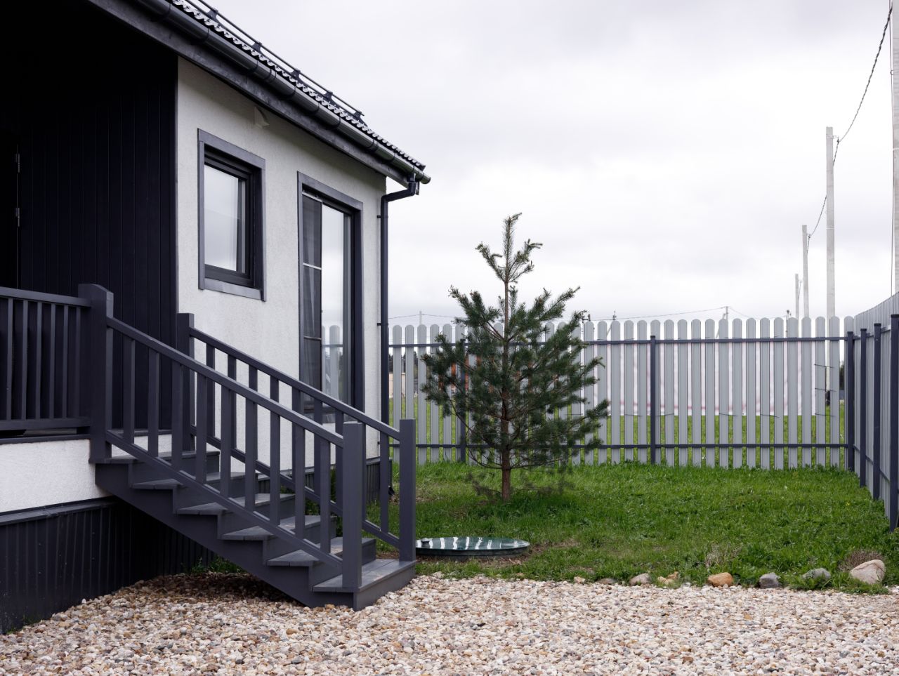Особое внимание уделено благоустройству внешней территории. Участок аккуратно спланирован: ровная поверхность, удобные подъездные пути, оборудованная парковочная зона на два автомобиля, дорожные покрытия из щебня.