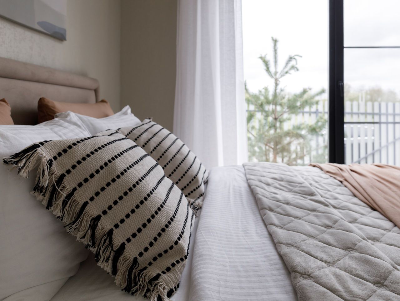 Просторные помещения с панорамными окнами и высокими потолками создают атмосферу света и воздуха, наполняя пространство ощущением свободы и воздушности. Современный интерьер идеально сочетает стиль и комфорт, оснащен качественной мебелью, бытовой техникой и продуманным декором, позволяя мгновенно ощутить домашний уют.