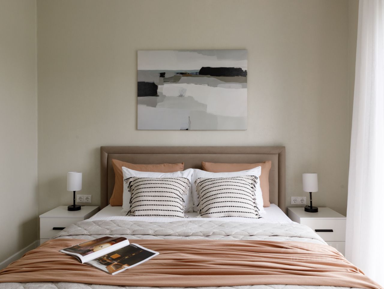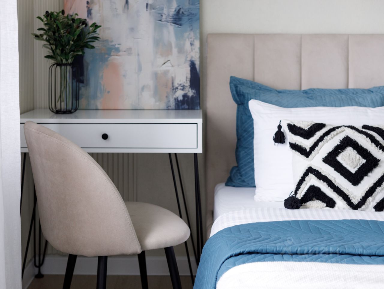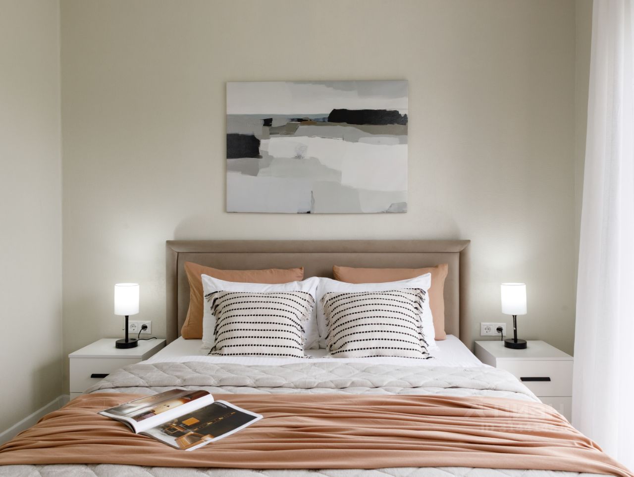 Удобная планировка включает большую гостиную-кухню, две светлых спальных комнаты, функциональную ванную зону, вместительную гардеробную и открытую террасу, где приятно коротать теплые летние вечера на свежем воздухе.