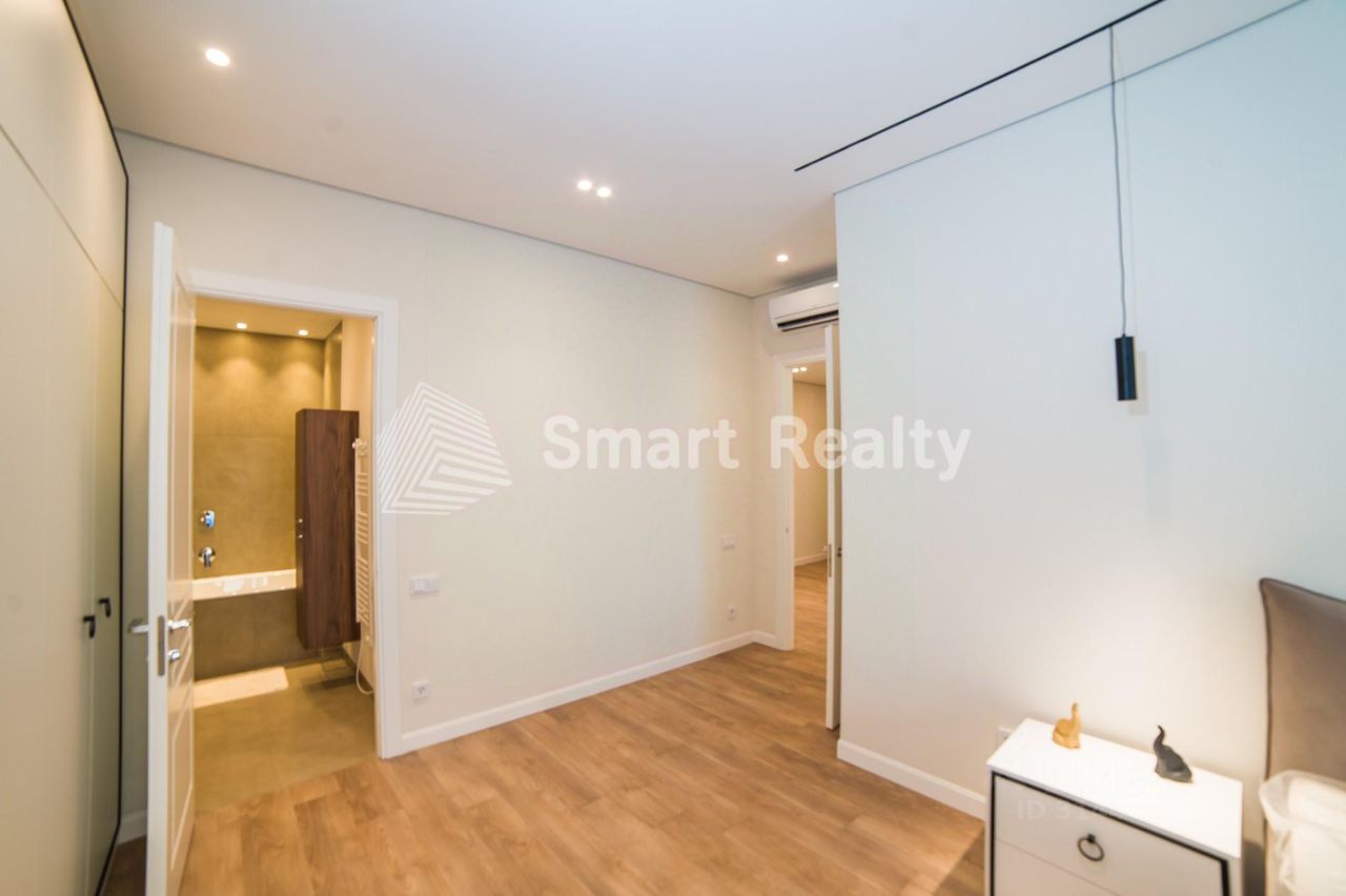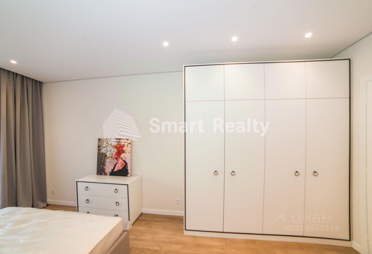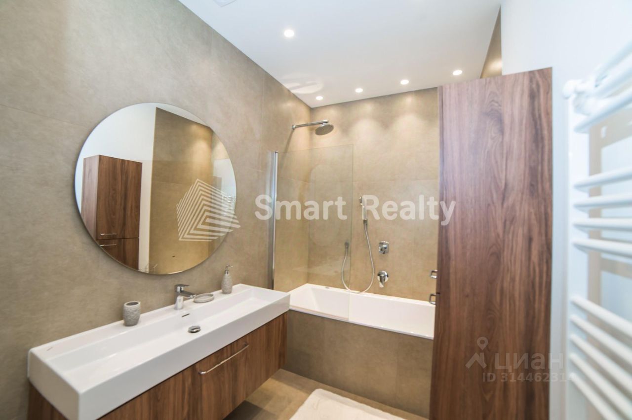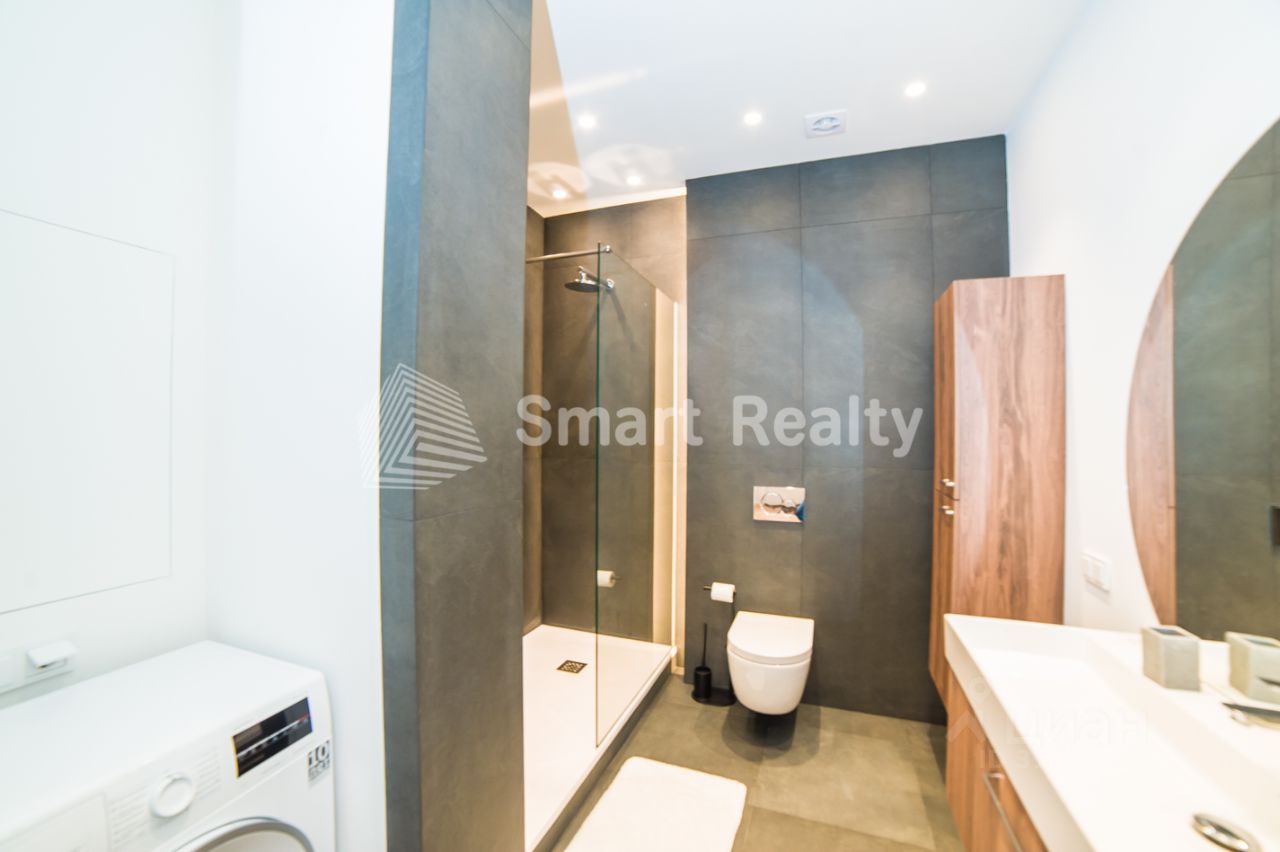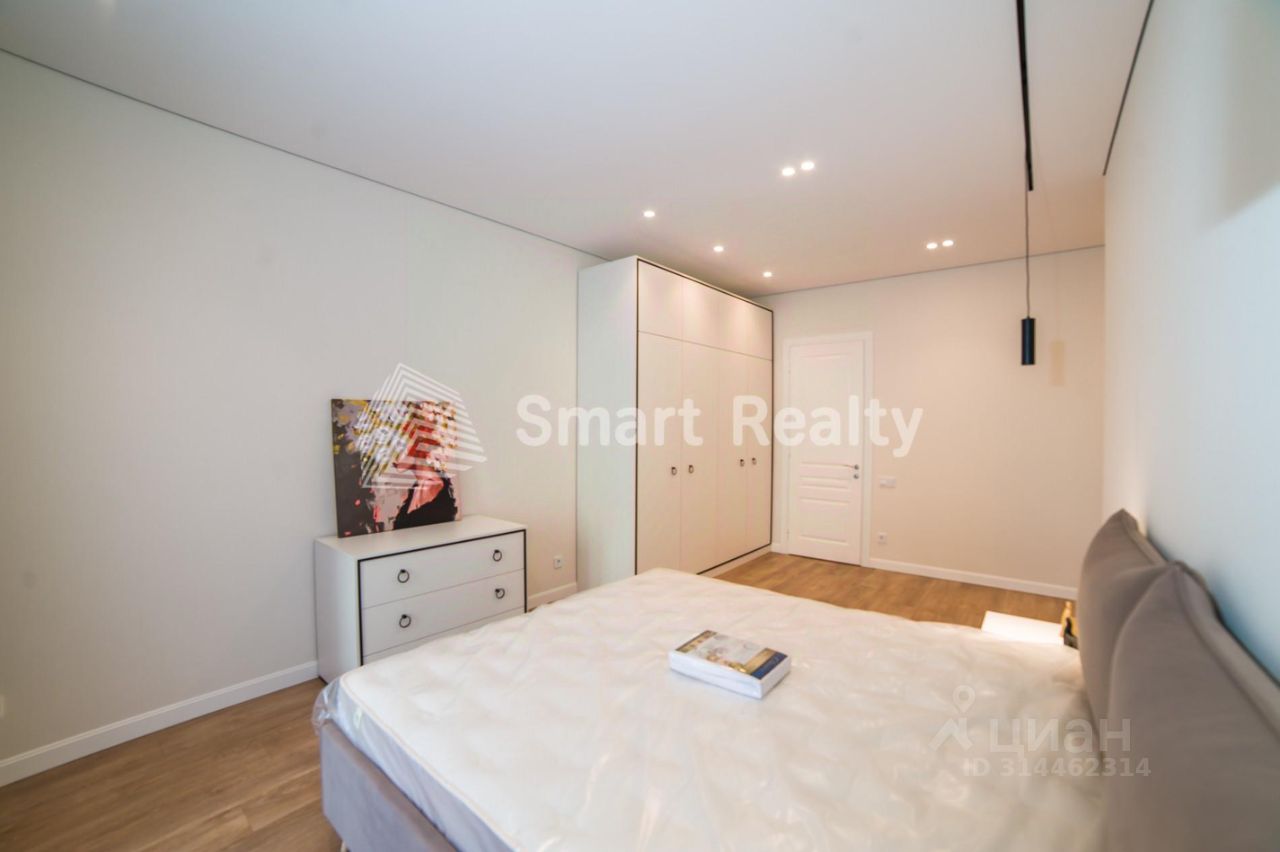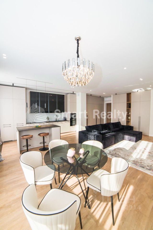 Планировка: - Кухня-гостиная: 56 кв. м - Мастер-спальня: 25 кв. м - Детская: 15 кв. м - Кабинет: 12 кв. м - Холл: 15 кв. м - 3 санузла - Балкон