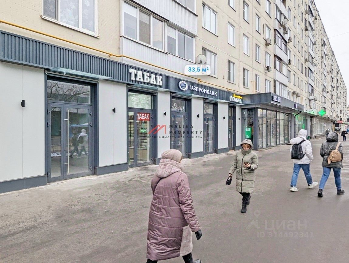 Помещение 33,5 м2, располагается на 1 этаже, открытая планировка, два отдельных входа с фасада, высота потолка 3,7 м, витринные окна по фасаду. Парковка перед фасадом. Место для размещения рекламы.