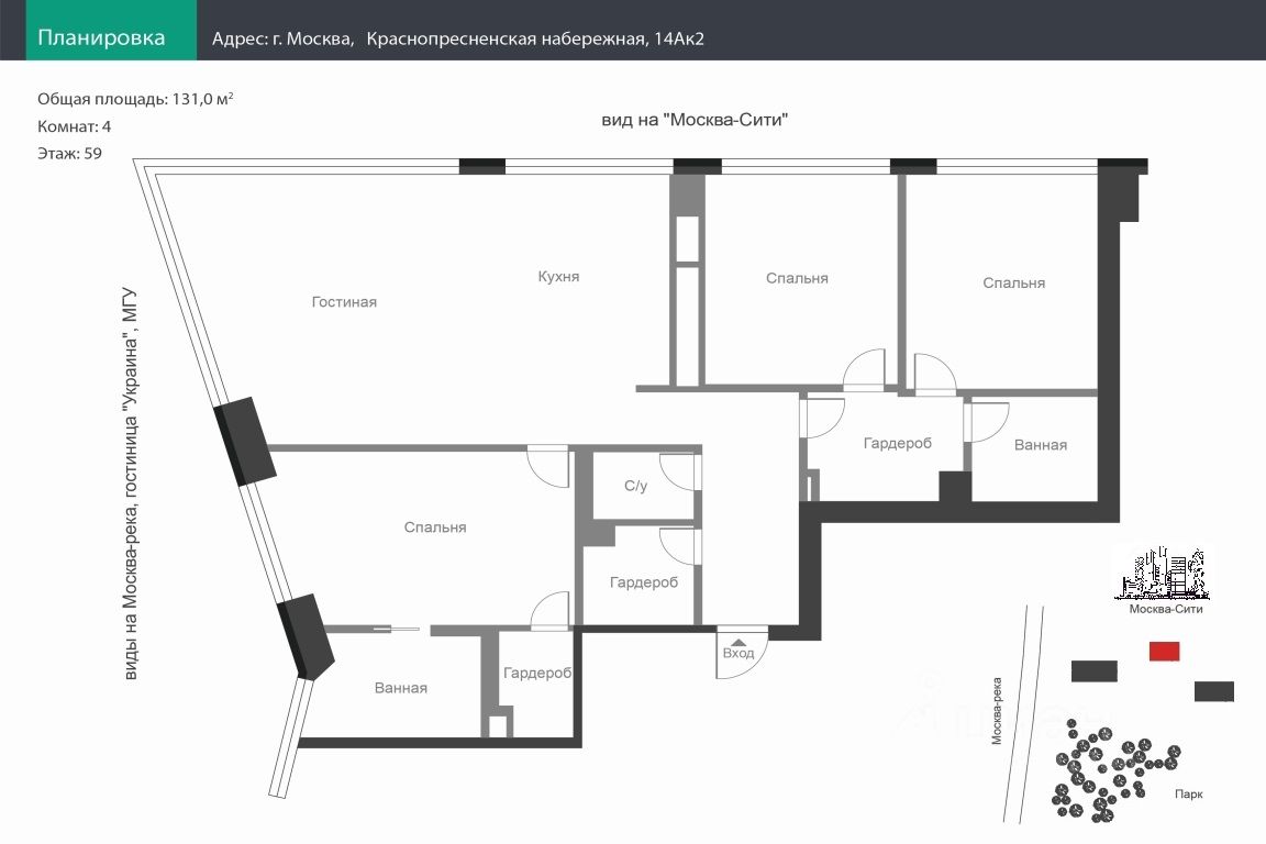 ЛОТ 24862. Предлагается квартира в жилом комплексе Capital Towers на набережной Москва-реки, рядом с парком Красная Пресня. Башня City Tower. Из панорамных окон открываются неповторимые виды на Москва-реку, гостиницу ''Украина'', МГУ, Москва-Сити. Функциональная планировка предполагает просторную зону кухни-столовой-гостиной, 3 спальни, гардеробную, 3 санузла. Capital Towers — это комплекс жилых небоскребов, жителям которого доступны объекты собственной инфраструктуры: детский досуговый центр, фитнес-центр, консьерж-служба, инновационная прачечная, магазины, кафе, рестораны и др. Подземный паркинг. В комплексе обеспечен высокий уровень безопасности. Идеальное расположение вблизи делового района Москва-Сити. В шаговой доступности от жилого комплекса находится станция метро Деловой центр.