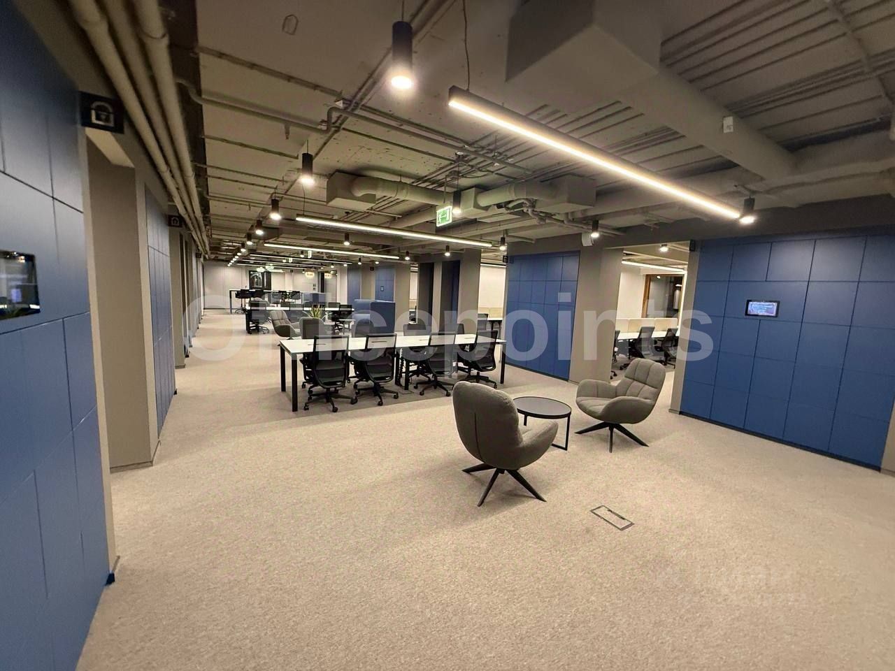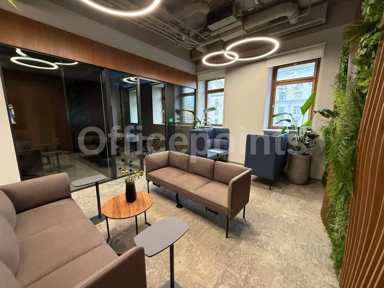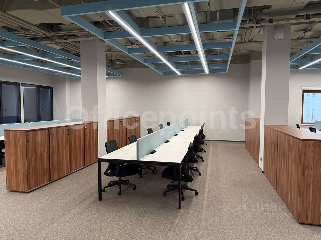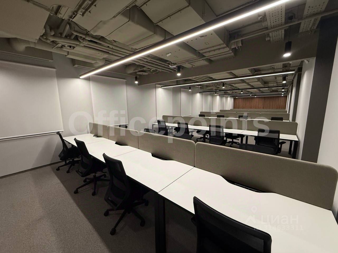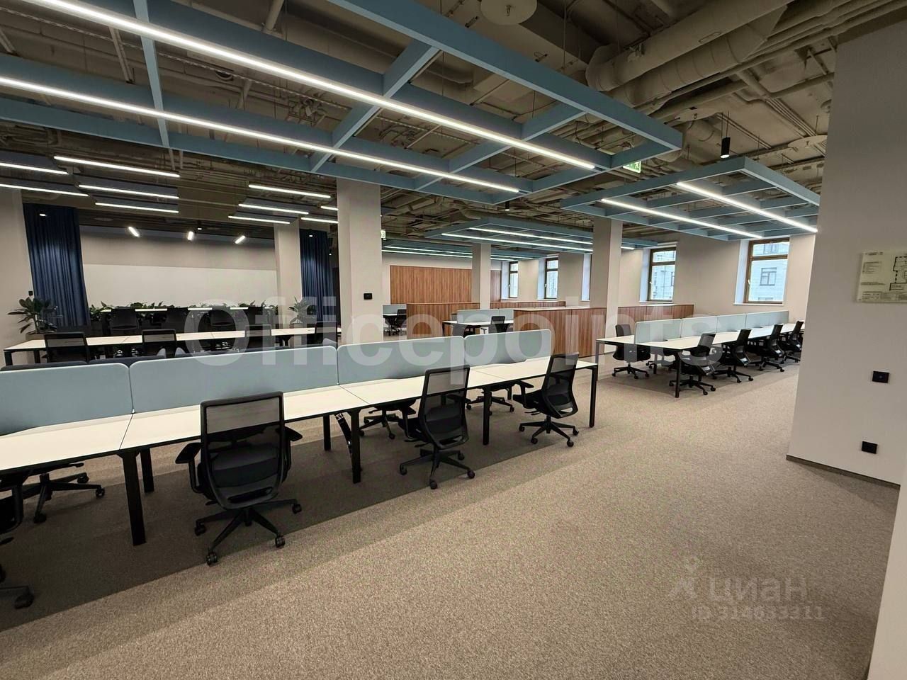 В помещении выполнена офисная отделка, смешанная планировка, на 160 рабочих мест. Центральная система кондиционирования и приточно-вытяжная система вентиляции. В наличии подземная парковка (30 000 руб. в месяц за м/место).