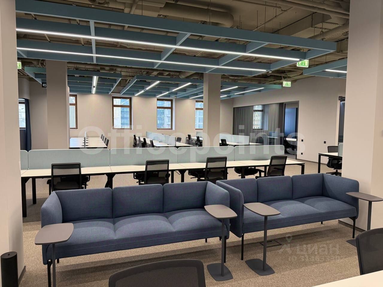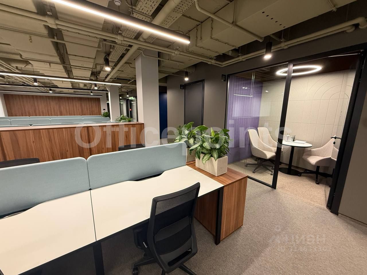 В помещении выполнена офисная отделка, смешанная планировка, на 123 рабочих места. Центральная система кондиционирования и приточно-вытяжная система вентиляции. В наличии подземная парковка (30 000 руб. в месяц за м/место).