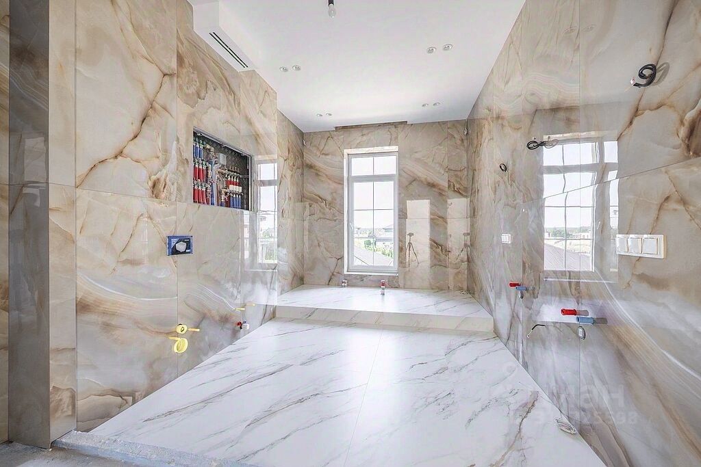 Загородный коттедж площадью 433 кв.м. с дизайнерским ремонтом в светлых тонах. Все коммуникации заведены в дом. Внутреннее пространство помимо общих зон включает 4 спальни с санузлами и гардеробными.
