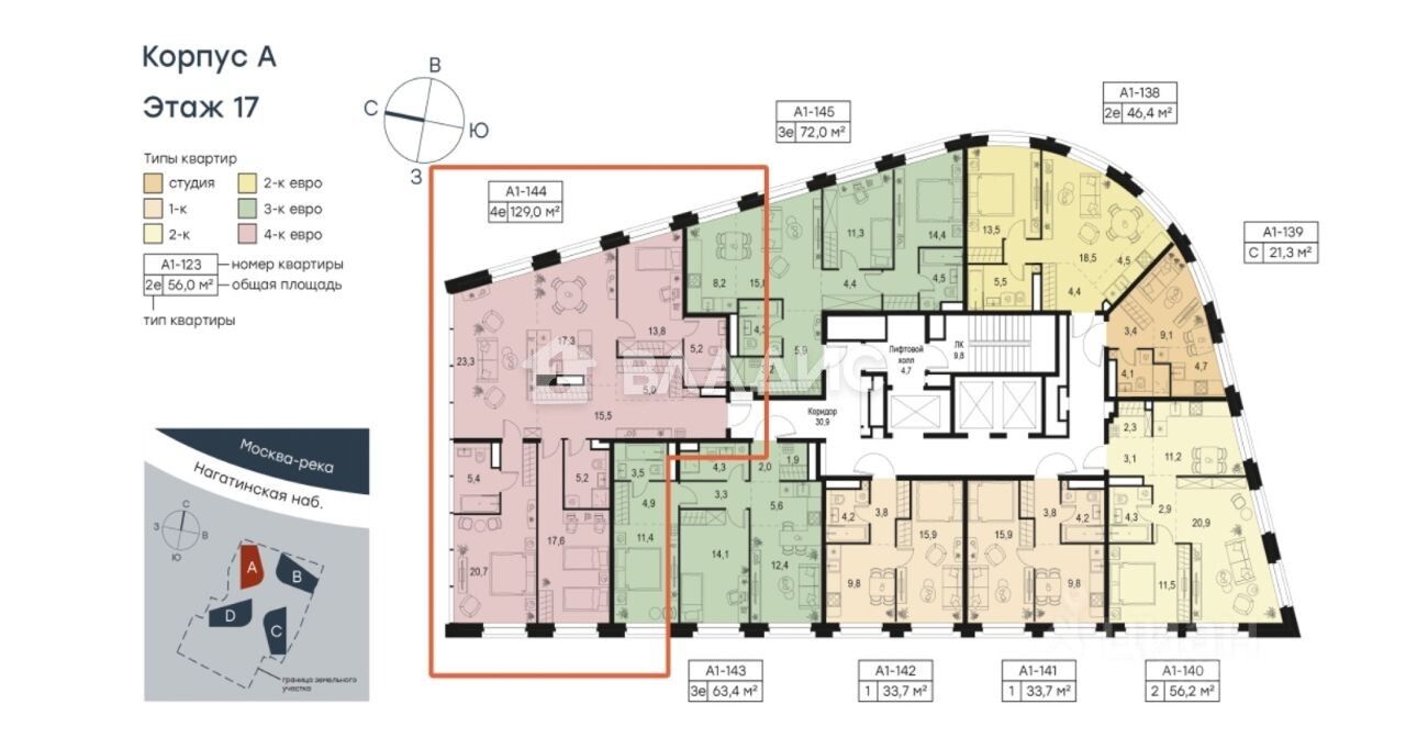 Продаётся просторная 4-комнатная квартира с фантастически красивыми видами на Москву-реку в новом доме ''LEVEL Нагатинский'' на Нагатинской набережной, 10А в Москве.
