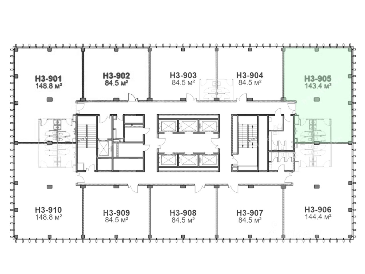 - Размер типового этажа: 1450,