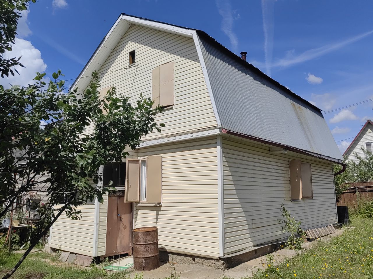Продается двухэтажный дом из бруса (обшит сайдингом) на участке 6 соток в СНТ Багульник с возможностью ездить своим ходом (7 МИНУТ ПЕШКОМ СТАНЦИЯ ПРИВАЛОВО, 1 ЧАС 20 МИНУТ ПАВЕЛЕЦКИЙ ВОКЗАЛ), год постройки 2001, адрес: с. Привалово г.о. Ступино вблизи пгт. Михнево. Свет, фундамент ленточный 1,3 м., общая площадь 60 кв.м., сруб из Вологды 6x6, вода в доме, 1этаж -прихожая, кухня 13 кв.м., комнаты 7.5/16 кв.м., 2-ой этаж: холл 12 кв.м., две спальни 16/16 кв.м., дом строили для себя, металлические ставни с закрытием из нутри, печь, кондиционер, генератор (5 квт), скважина, газ в балонах, видеонаблюдение, сигнализация. На участке: беседка.