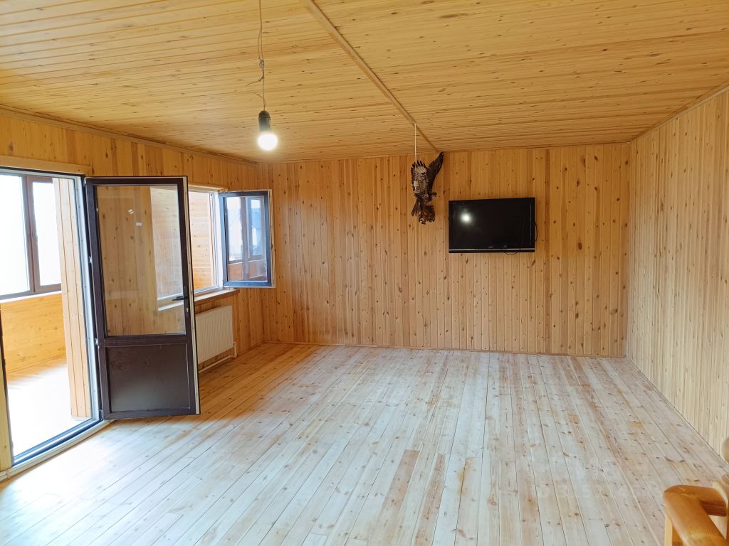 Продаётся новый тёплый и уютный двухэтажный дом из бревна с внешней и внутренней отделкой площадью 210 кв.м на участке 11 соток. В доме на первом этаже: Открытая веранда Санузел с тёплым полом. Большая кухня-гостиная. Гостевая комната. На втором этаже: Эксклюзивная резная лестница. Три просторные спальные комнаты . На участке построена шикарная баня площадью 100 кв. м с отличной парной , санузлом, отдельной душевой и печью ''Везувий'' На втором этаже бани просторная комната , где можно поставить бильярд, теннис ,либо её разделить и сделать две изолированные комнаты и просторная застеклённая лоджия. В бане есть электрокотел со всем оборудованием. Можно использовать как гостевой дом.
