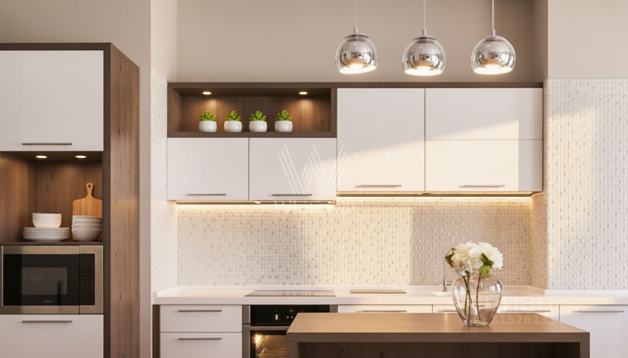 Квартира выполнена в современном стиле с использованием высококачественных материалов. Атмосферу формируют продуманные сценарии освещения: изящные люстры, мягкие настенные светильники и точечные споты, создающие уют в каждой зоне.