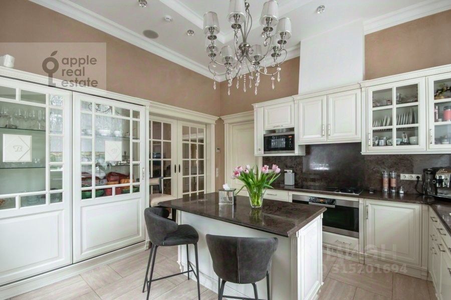 На участке есть детская зона, беседка с барбекю. Есть домик для персонала (кухня, спальня, с/у), гараж на 2 а/м. В доме есть кинотеатр, бассейн 12х4 м2 с противотоком, установлена приточно-вытяжная вентиляция с встроенным кондиционированием. Техника, мебель, освещение - от ведущих производителей: Miele, Liebherr, Brummeln, Fineart, Macintosh, Provasi, Sabio Firmino, Samsung, Viessman, Villeroy Bocsh, Weber и др.