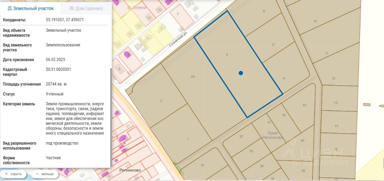 - Территориальная зона: П (Производственная зона). Основные виды разрешенного использования в соответствии с ПЗЗ: Ремонт автомобилей 4.9.1.4, Стоянка транспортных средств 4.9.2, Производственная деятельность 6.0, Автомобилестроительная промышленность 6.2.1, Легкая промышленность 6.3, Хранение автотранспорта 2.7.1, Размещение гаражей для собственных нужд 2.7.2, Общежития 3.2.4, Приюты для животных 3.10.2, Служебные гаражи 4.9, Объекты дорожного сервиса 4.9.1, Заправка транспортных средств 4.9.1.1, Фармацевтическая промышленность 6.3.1, Фарфоро-фаянсовая промышленность 6.3.2, Электронная промышленность 6.3.3, Пищевая промышленность 6.4, Строительная промышленность 6.6, Энергетика 6.7, Связь 6.8, Склад 6.9, Складские площадки 6.9.1, Автомобильный транспорт 7.2, Обслуживание перевозок пассажиров 7.2.2, Стоянки транспорта общего пользования 7.2.3, Автомобильные мойки 4.9.1.3, Ювелирная промышленность 6.3.4, Нефтехимическая промышленность 6.5, Тяжелая промышленность 6.2, Гидротехнические сооружения 11.3, Обеспечение дорожного отдыха 4.9.1.2,
