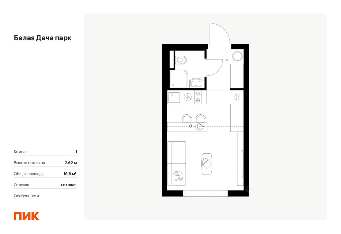 Продаётся квартира-студия площадью 19,9 кв.м на 2 этаже 11 этажного дома (Корпус 16.2, Секция 8) проекта ПИК Белая Дача парк. Светлый просторный подъезд на уровне земли, функциональная планировка, большие окна, .