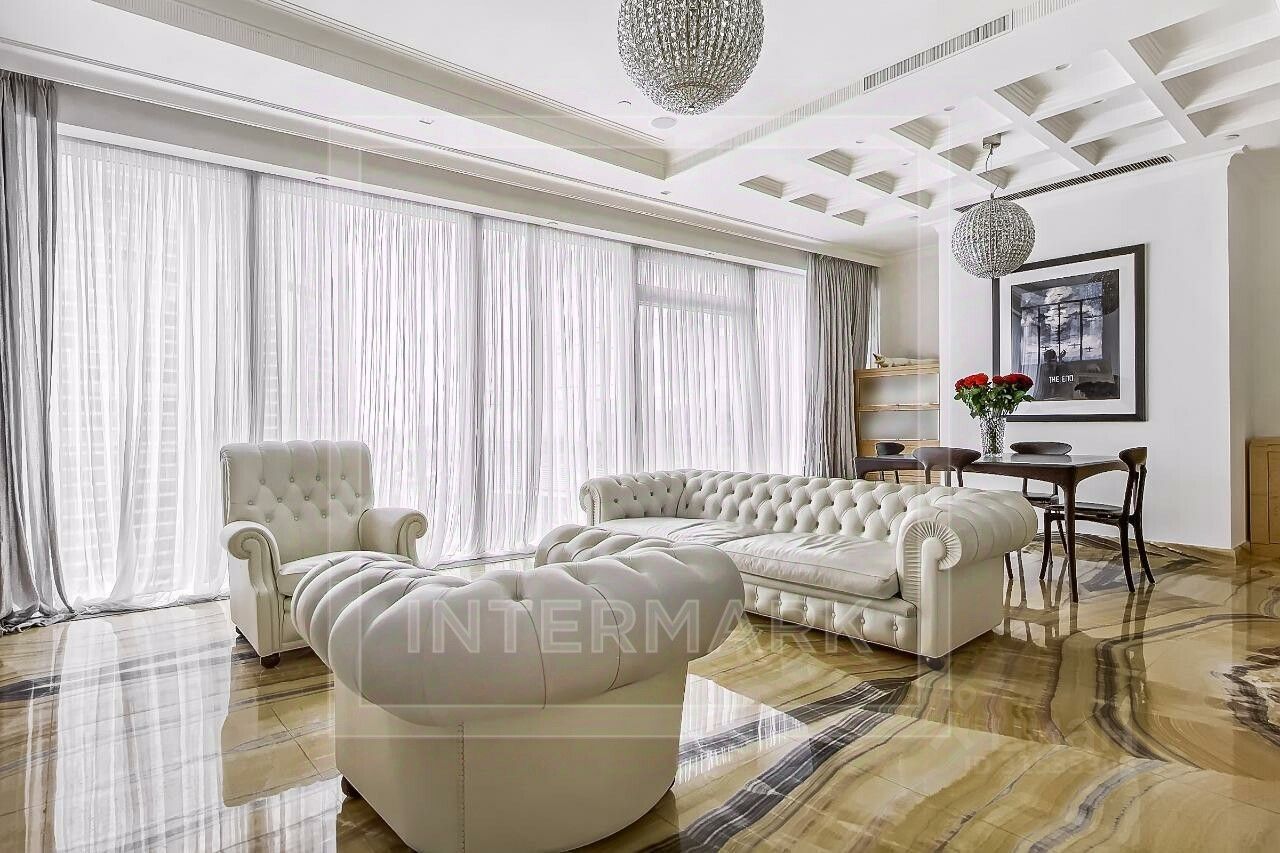 ID 63104. Эксклюзив. Только в Intermark. Роскошный апартамент в ЖК ''Город Столиц'' с видом на Москва-Сити. Апартамент физически и юридически свободен, и подготовлен к сделке. Новый дизайнерский ремонт с использованием высококачественных натуральных материалов. Комфортная планировка включает просторную гостиную-кухню, гостевой санузел и master-bedroom со своей гардеробной и ванной комнатой, общая площадь 103 кв. м. Консьерж, охрана территории дома, м/место в подземном паркинге. ЖК ''Город Столиц'' - часть московского международного делового центра ''Москва-Сити''. К услугам жильцов многочисленная инфраструктура, необходимая для комфортной жизни супермаркеты, рестораны, бары, бутики, фитнес-клубы и многое другое.