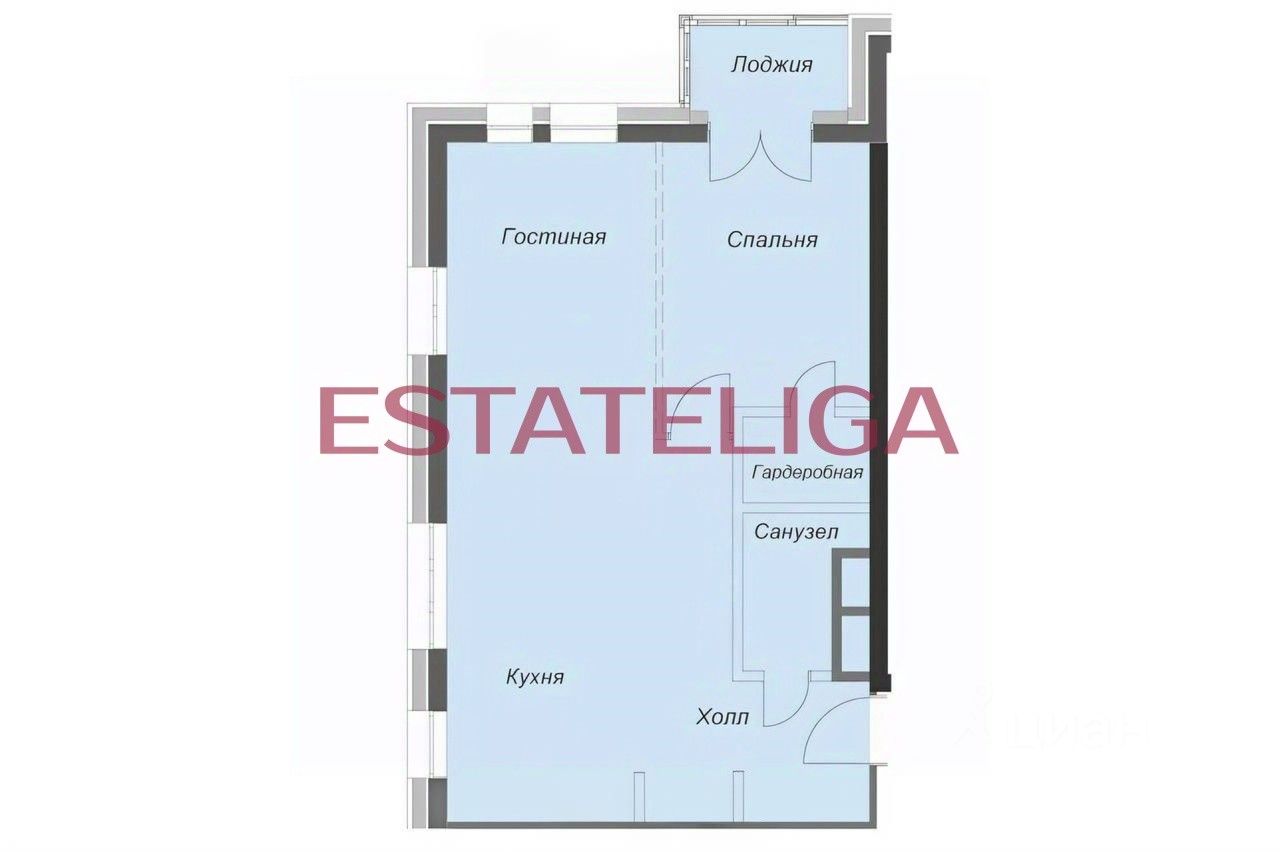 Функциональная планировка апартамента: просторная кухня-гостиная, изолированная спальня со гардеробной комнатой и балконом, совмещенный санузел с душем.