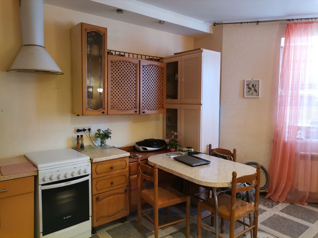 Просторная квартира свободной планировки с высокими потолками и эркером. При желании можно сделать перегородку между кухней и комнатой.