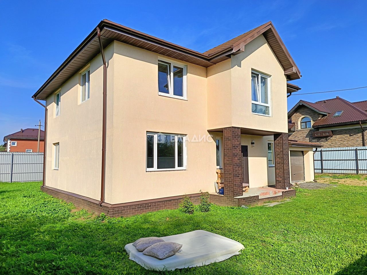 Дом находится в 17 километрах от города, что обеспечивает спокойную жизнь вдали от городской суеты. При этом добраться до города можно за короткое время. Участок правильной формы, сухой, площадью 8,21 соток с асфальтовым подъездом. Коммуникации: электричество, водоснабжение, газ, канализация.