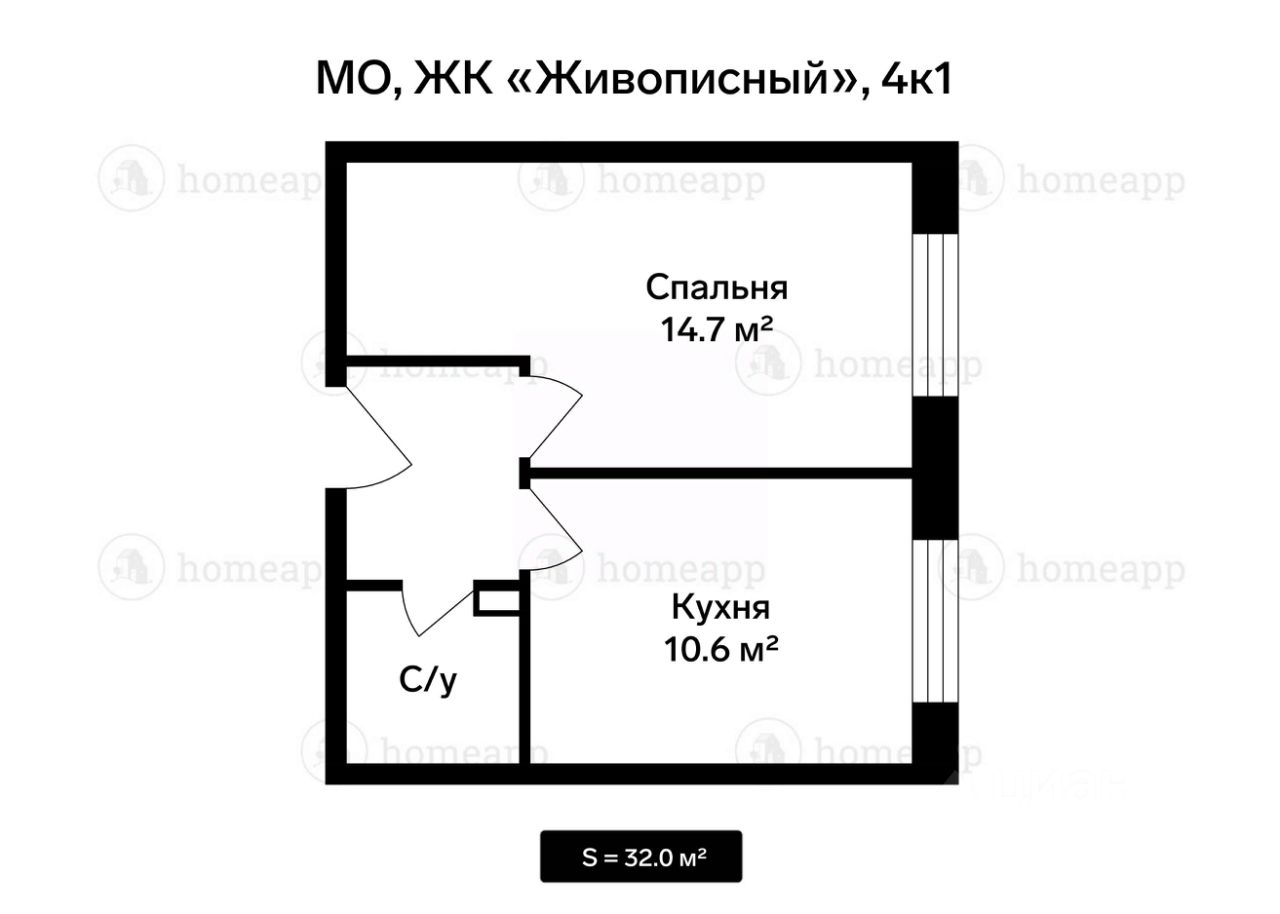 Номер лота: 79221. Предлагается 1-комнатная квартира площадью 32 м² на высоком 1-м этаже 4-этажного монолитно-кирпичного дома в жилом комплексе комфорт-класса ''Живописный''. Планировкой предусмотрены изолированная спальня, просторная кухня, совмещённый санузел и зона прихожей. Окна выходят во двор.