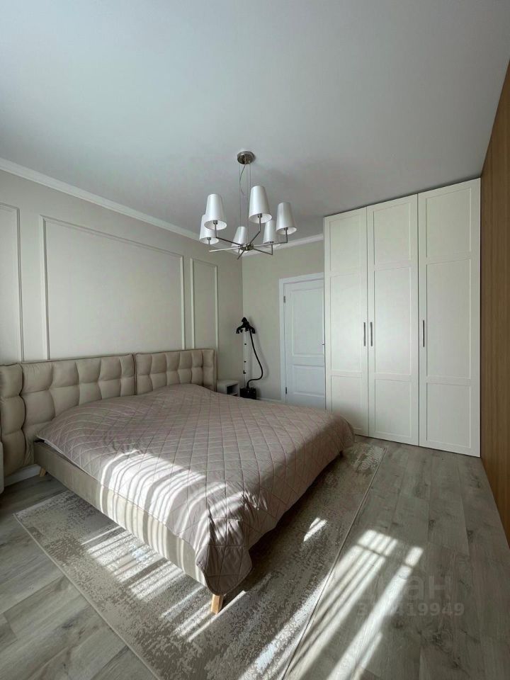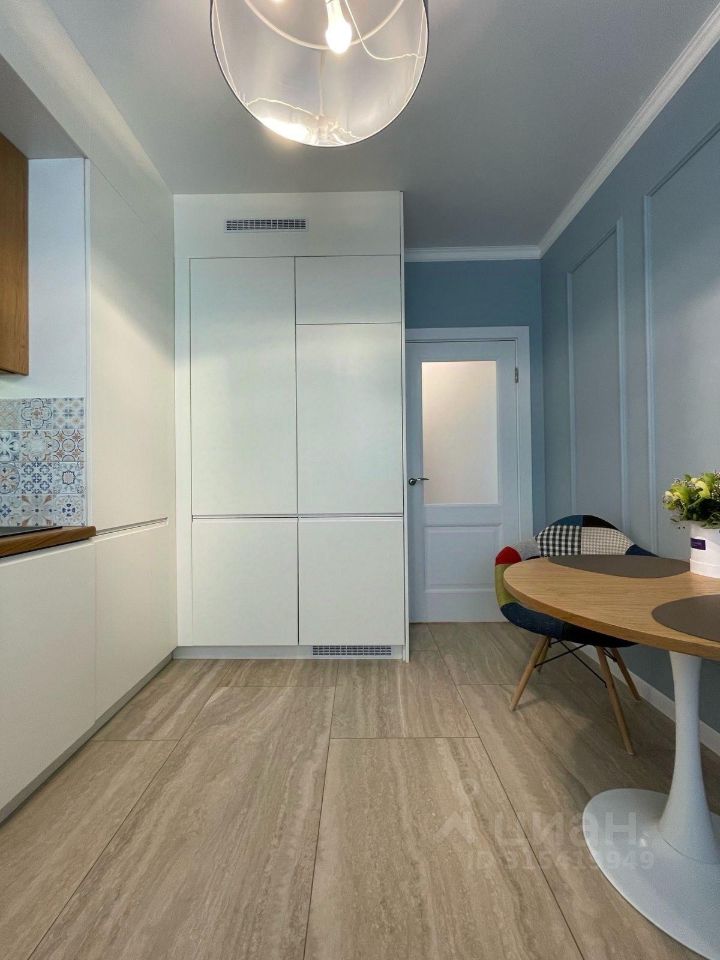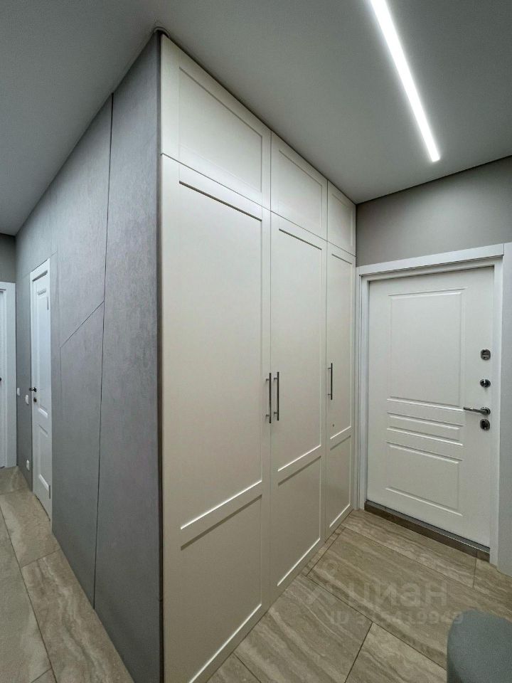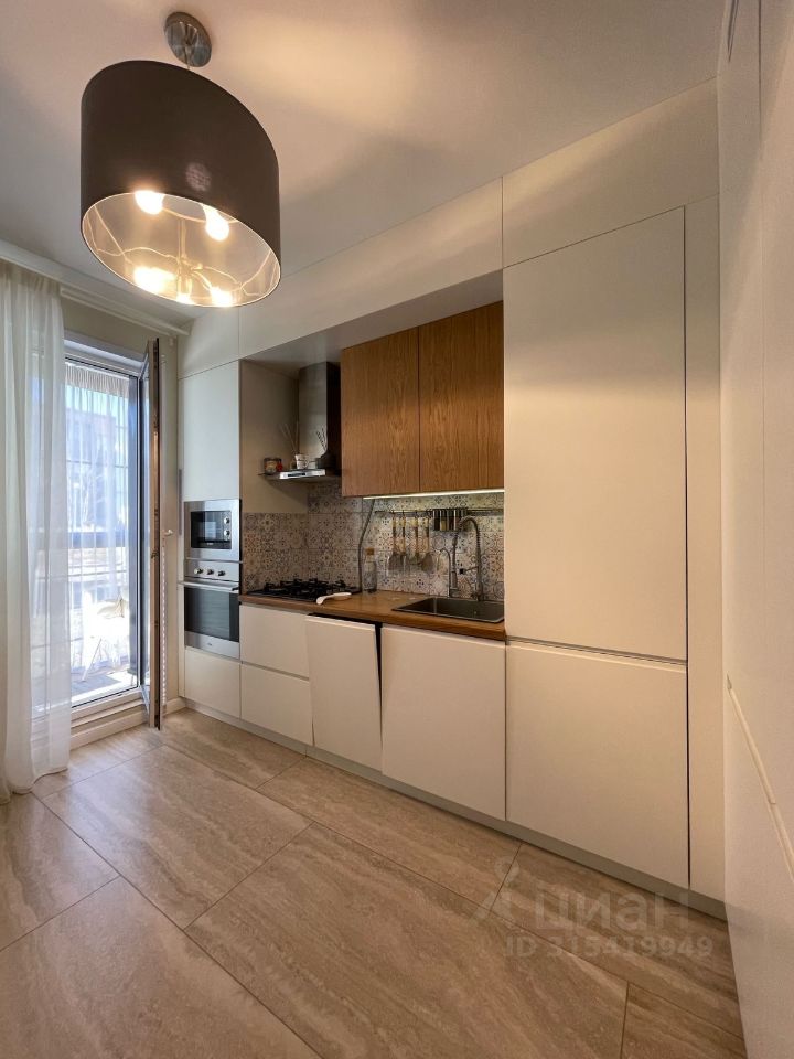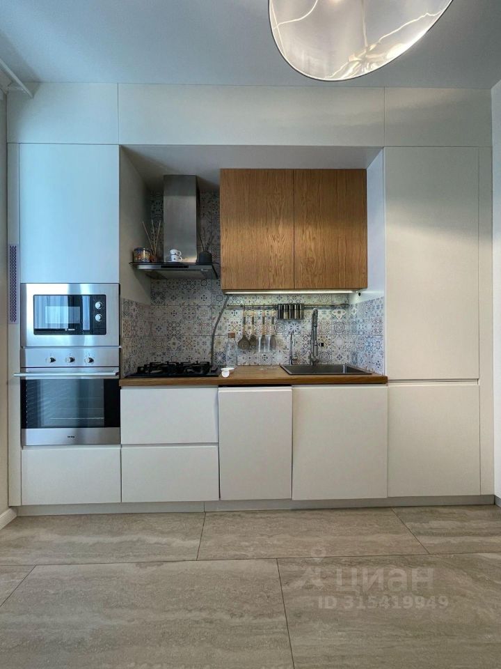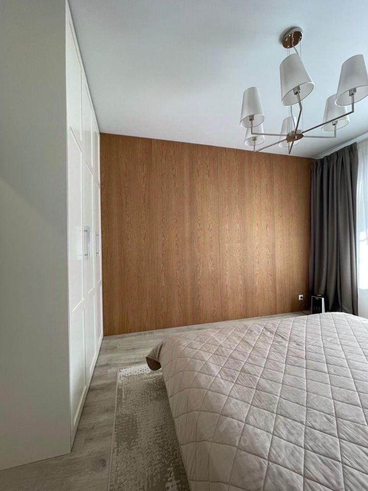 Кухонный гарнитур со столешницей из массива дуба, вся встроенная техника: Духовой шкаф Korting, Микроволновая печь Bosh, вытяжка Samsung, посудомоечная машина Beko, стиральная машина Weissgauf, холодильник Beko. Вся мебель в квартире изготовлена на заказ из дорогостоящих материалов.