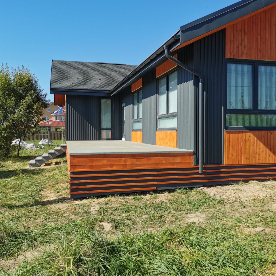 Современный Каркасный дом в финском стиле площадью 143 кв.м включая летнюю террасу 26 кв.м (общая площадь всех комнат- 117 кв.м) расположен на участке 12 соток ИЖС Описание дома: 3 спальни, кухня-столовая-гостиная, 2 санузла, техническое помещение, холл и гардеробная. Высота потолка в гостиной: 4.2 м создаёт атмосферу простора и света. плюсом Чердачное помещение! 90кв.м. Участок: прямоугольной формы, высокий и сухой, песчаная почва, не огорожен, очень большая прилегающая территория перед участком Строительные материалы: Каркас из качественной сосны размером 150*50, лаги и стропила размером 200*50. Утепление: стены и пол 200мм, утепление кровли 300мм Сваи 108мм, металл 4мм (глубина 1,7 метра, заполнены бетоном) Фасадная часть дома отделана матовым проф.листом Сатин GRАNDLINЕ толщиной 0.5 мм. и планкеном. Кровельный пирог Технониколь Теплый пол (водяной) в половине дома Коммуникации: Электричество — 15 кВ (сельский тариф) Колодец, септик Вся деревня газифицирована, с возможностью подключения по социальной программе от границы участка. Инфраструктура: В одном километре находится большое озеро с чистым пляжем и живописными пейзажами. Рядом грибные леса, рыбалка В менее чем километре развитая инфраструктура поселка Колюбакино: магазины (Магнит, Дикси, Пятерочка, Озон), почта, банкоматы, заправки, поликлиника, аптеки и школы. отличная транспортная доступность - от станции Тучково ходят два регулярных автобуса, всего 12 остановок (20мин). Быстрый проезд по двум магистралям Минскому/ Новорижскому шоссе. Примерно 1 час до МКАД Москва
