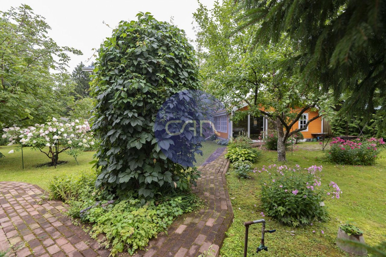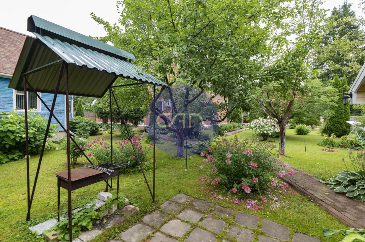 Ухоженный участок ровной формы (ИЖС) - 12 соток, размежеван, огорожен кирпичным забором с секциями из евро-штакетника и с автоматическими откатными воротами. На территории участка проведены ландшафтные работы, посажено множество декоративных и редких растений, яблоня, кусты смородины, разбит красивый сад вокруг дома. Дополнительно, за основным зданием, на участке расположен двухэтажный деревянный дом с кухней и гриль-зоной, а также столярной мастерской, который можно использовать (преобразовать) под баню или использовать как гостевой дом.
