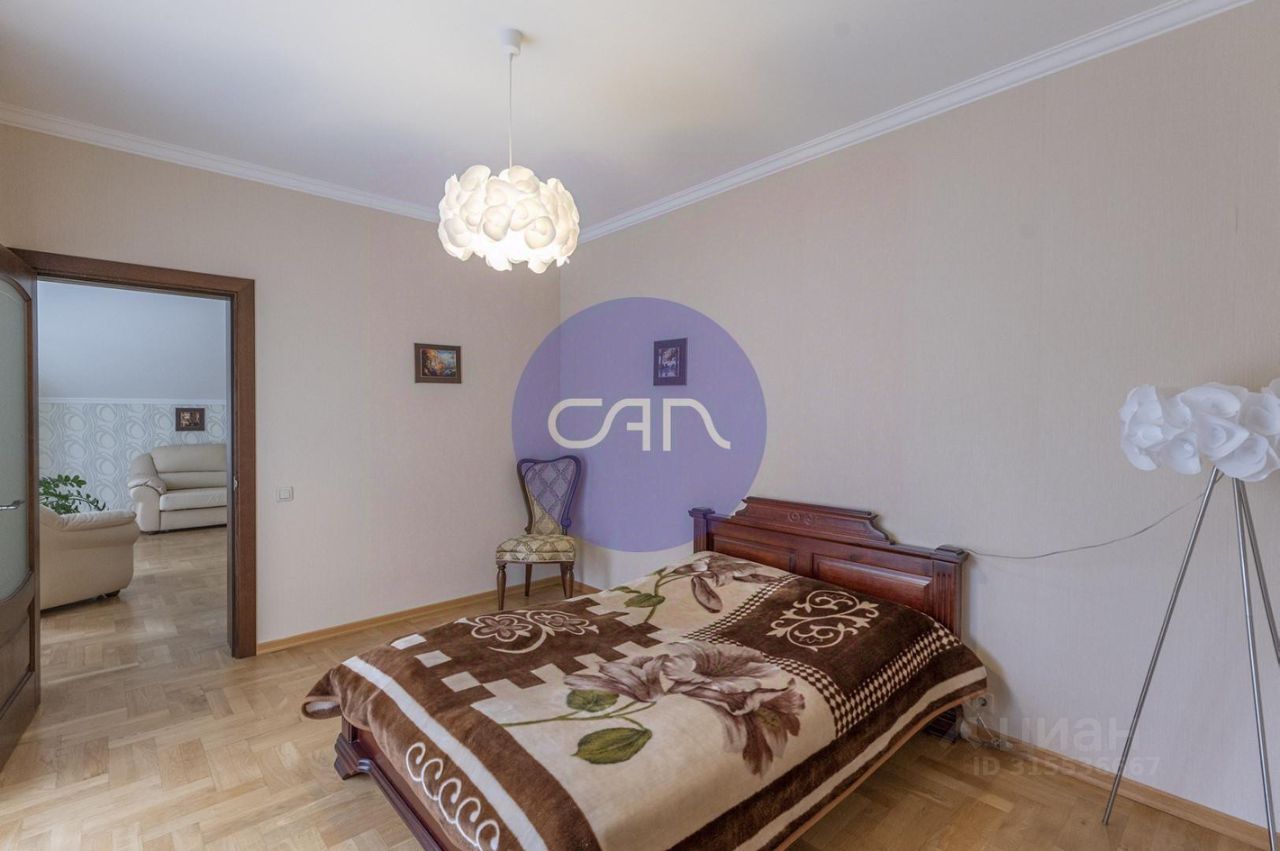 Планировочное решение: 1-й этаж: просторная кухня-гостиная с обеденным залом и зоной отдыха (оборудована всей необходимости встроенной техникой), изолированная спальня, общий санузел (с ванной), гардеробная. 2-й этаж: гостевой холл, 2 гостевые спальни, 2 мастер-спальни с выходом из каждой в свой просторный санузел, 2 балкона. 3-й этаж: большой зал свободного назначения (можно использовать под кинозал для всей семьи или детскую игровую комнату).
