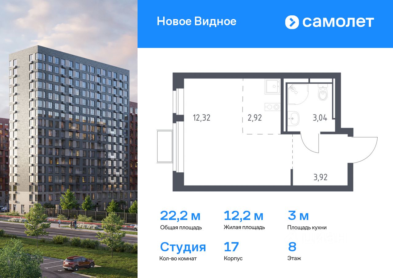 Предлагается квартира студия комфорт-класса 22,2 кв.м в корпусе 17 на 8 этаже, в ЖК ''Новое Видное'' Квартира без отделки. Доступность опции ''отделка'' и возможность комплектации мебелью и декором уточняйте у застройщика.