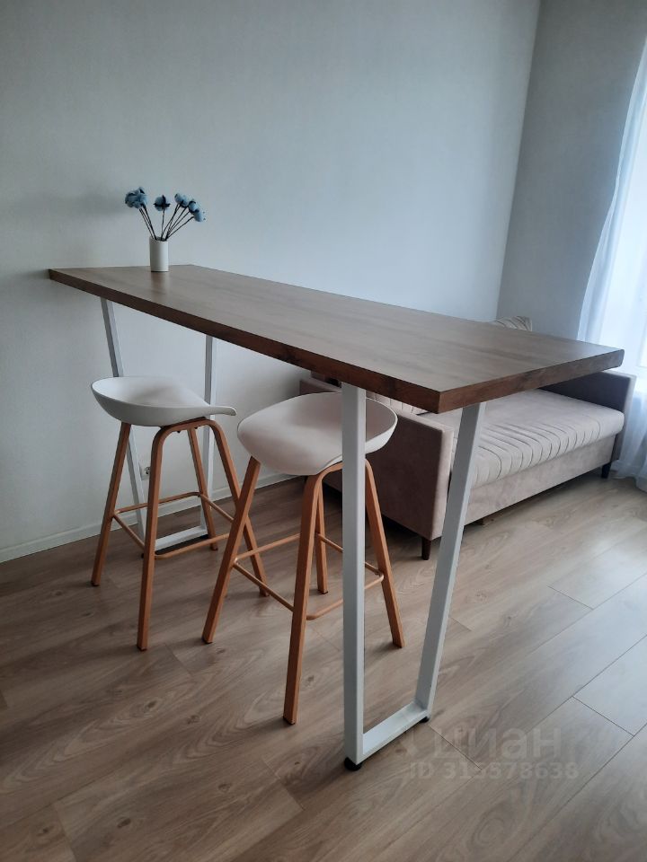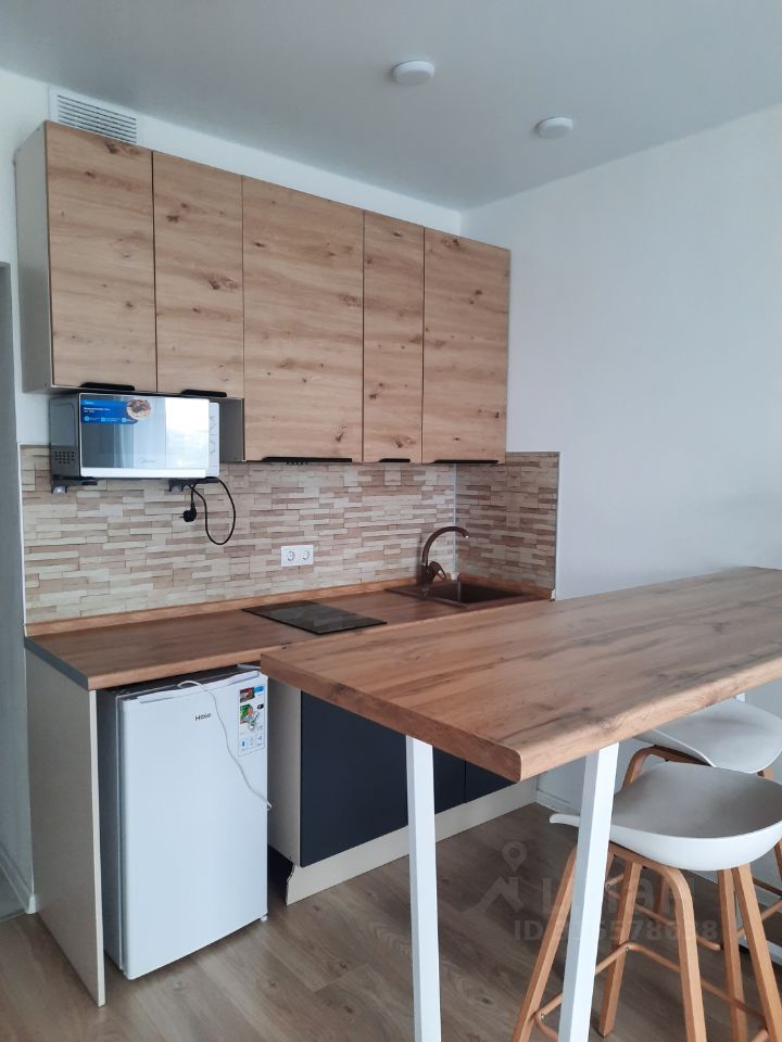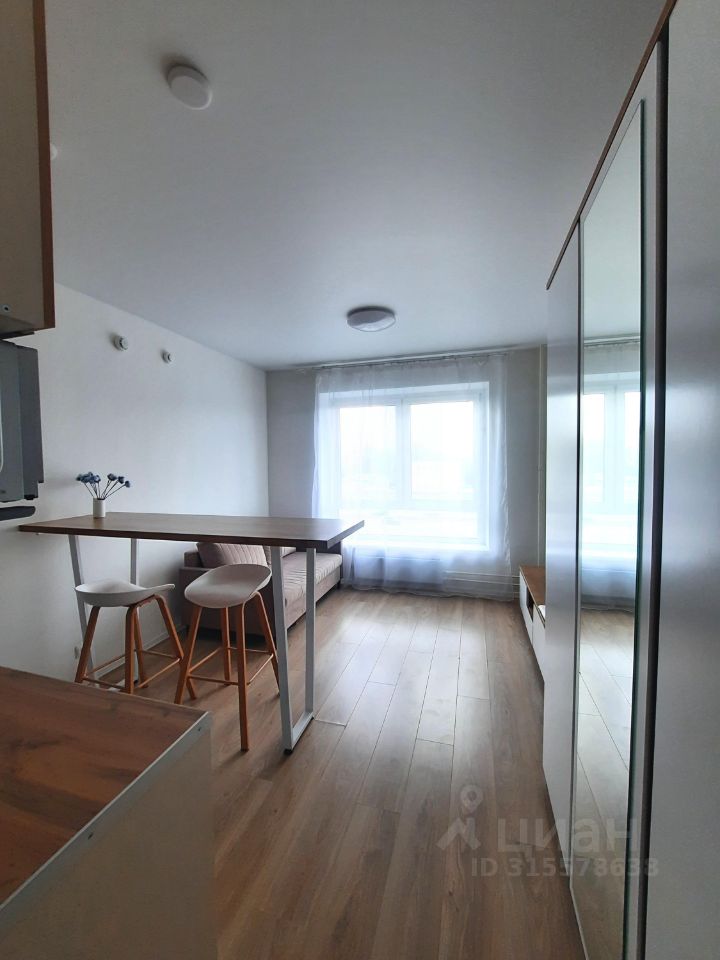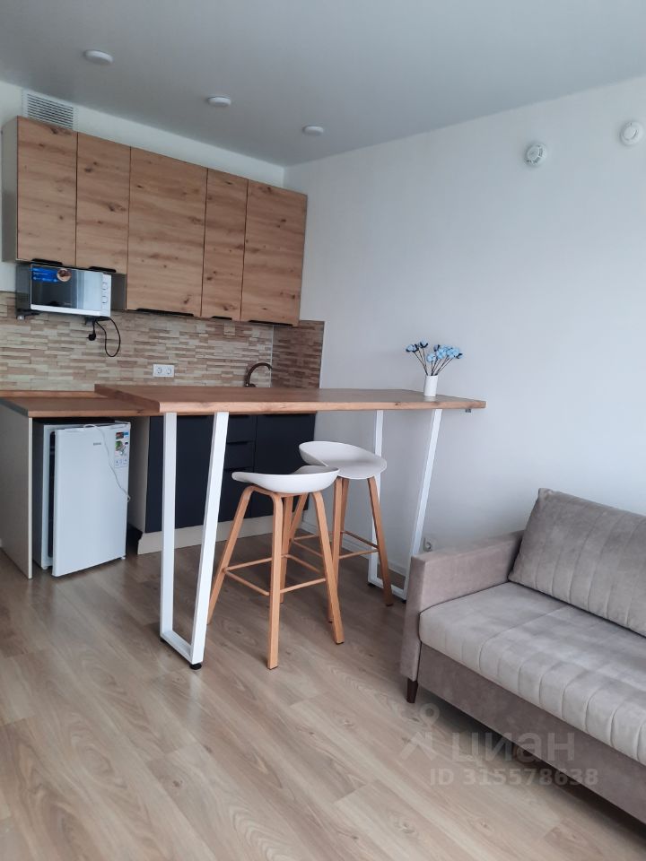Квартира-студия после свежего косметического ремонта. Новая мебель и техника (в т. ч. телевизор, которого нет на фото). Есть все необходимое для комфортного проживания в современной квартире в новом доме.