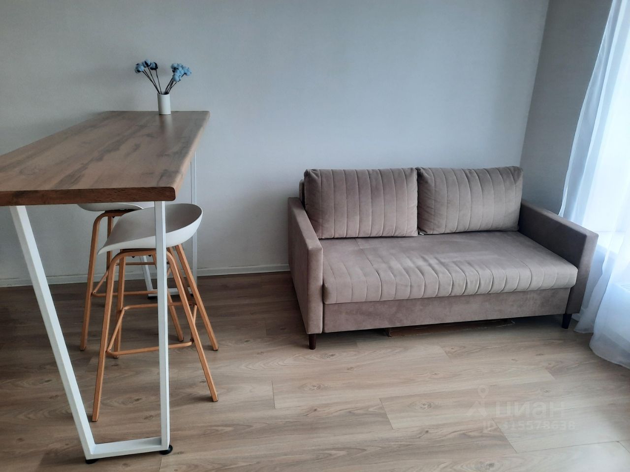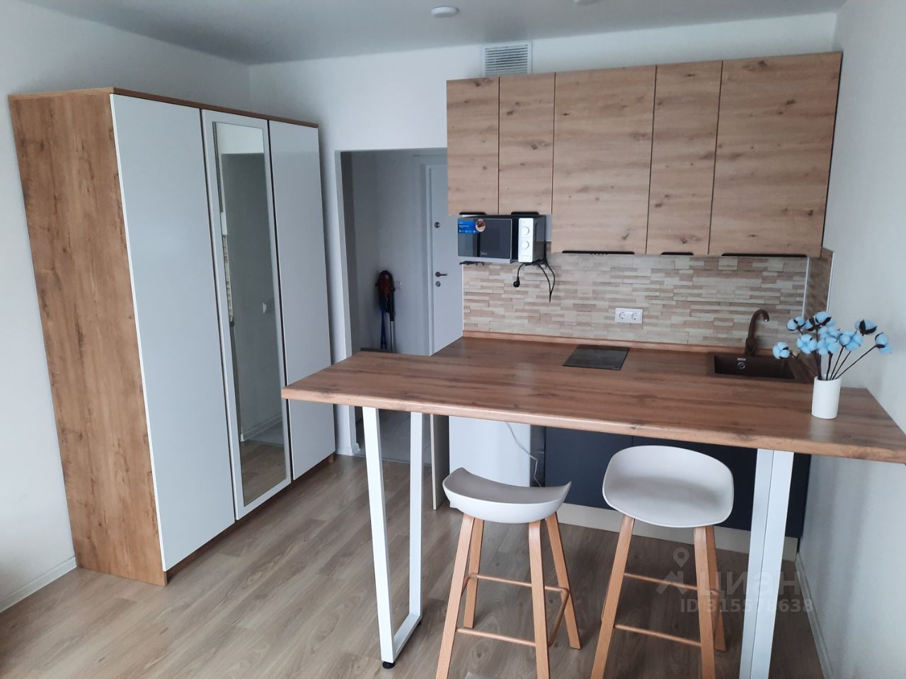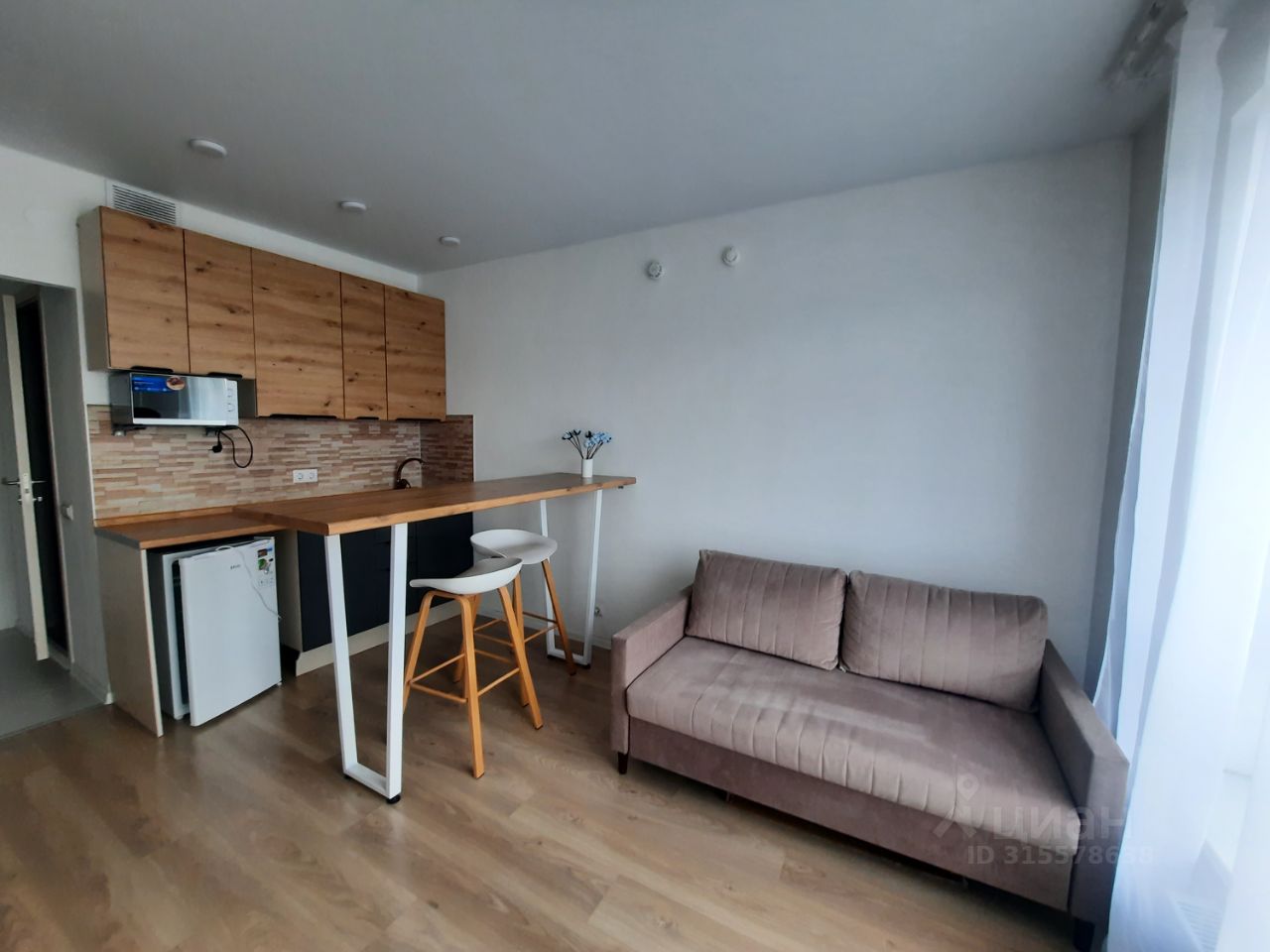 Квартира-студия после свежего косметического ремонта. Новая мебель и техника (в т. ч. телевизор, которого нет на фото). Есть все необходимое для комфортного проживания в современной квартире в новом доме.