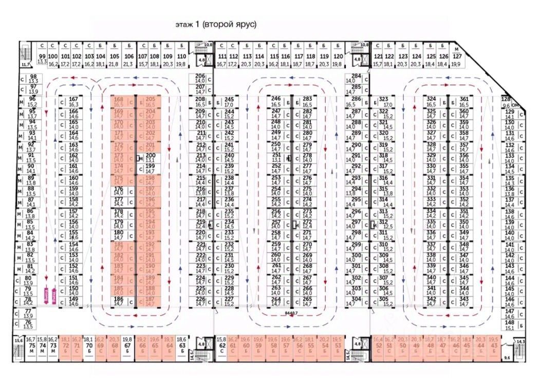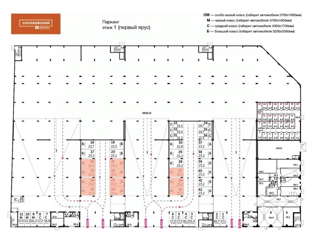 Машиноместо номер м/м116 общей площадью 14.6 кв. м на -1-м этаже в ЖК ''Римский''.