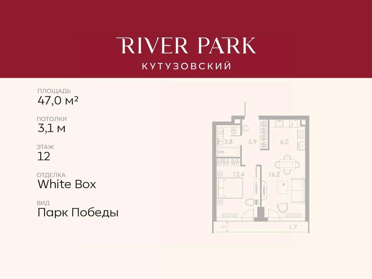 Расположение и Транспортная доступность: - На берегу Москвы-реки, напротив Москва-Сити - 600 метров до Кутузовского проспекта - Удобный съезд с ТТК - Прямой выезд на МКАД по Северному дублеру Кутузовского проспекта. - В пешей доступности 3 станции метро: Фили, Парк Победы, Кутузовская, а также станция МЦД Фили. Архитектура от именитого бюро ADM отличается уникальной пластикой фасадов - башни словно парят в воздухе, играя гранями как драгоценные камни. Жилой комплекс состоит из 5-ти небоскребов с home park на закрытой территории и внешней торговой галереей с открытым доступом.