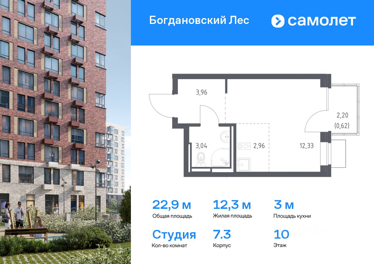 Предлагается квартира студия комфорт-класса 22,91 кв.м в корпусе 7.3 на 10 этаже, в ЖК ''Богдановский Лес'' Квартира с предчистовой отделкой. Доступность дополнительных опций уточняйте у застройщика.