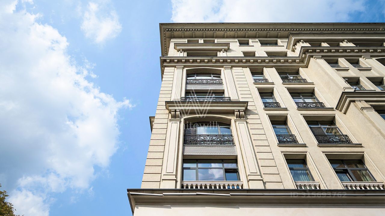 Квартира с шестью спальнями в комплексе ''Дом на Покровском бульваре'' недалеко от Чистых прудов. Квартира без отделки общей площадью 311 м² расположена на 8 этаже. Планировка позволяет организовать пространство по собственному усмотрению. Возможная планировка: кухня-гостиная, пять спален, кабинет, три санузла, две гардеробные и два балкона. Окна ориентированы на три стороны, открываются виды на благоустроенную территорию комплекса.