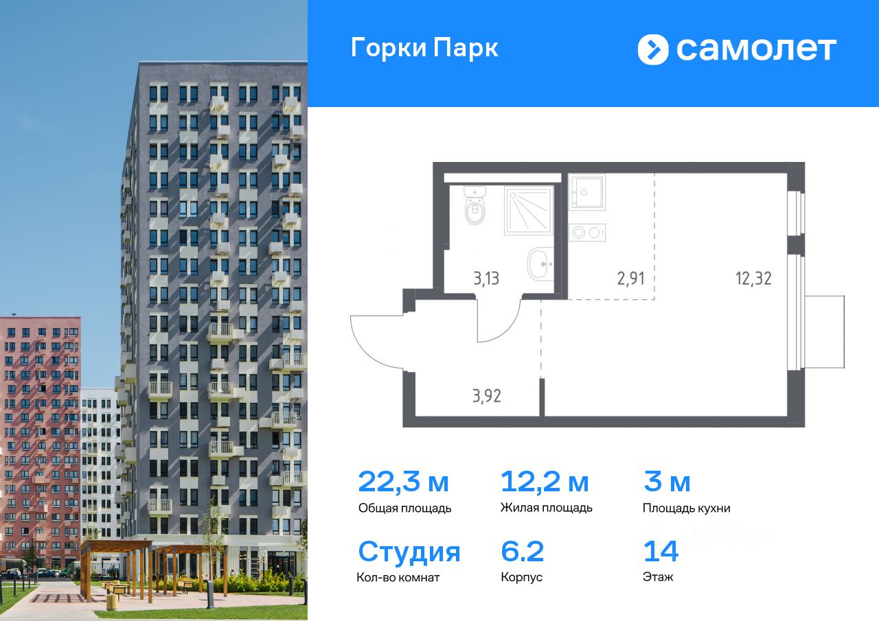 Предлагается квартира студия комфорт-класса 22,28 кв.м в корпусе 6.2 на 14 этаже, в ЖК ''Горки Парк'' Квартира с чистовой отделкой. Доступность дополнительных опций уточняйте у застройщика.