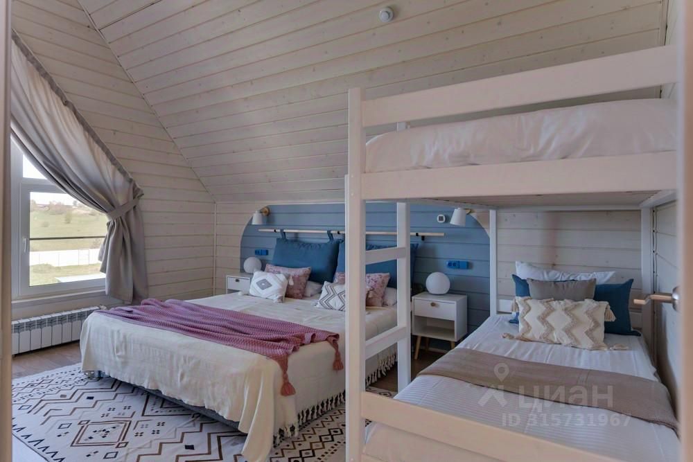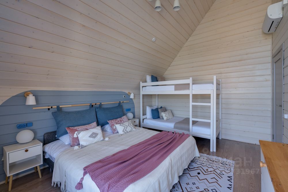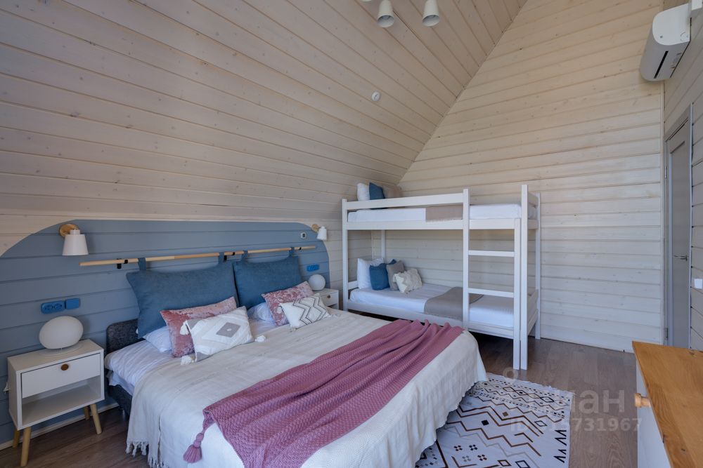 В доме есть все необходимое для проживания 5 взр. + 2 детей: - двуспальная кровать - 1шт, - односпальная кровать 2 шт. (можно соединить в двуспальную кровать), - двухъярусная кровать - 1 шт.
