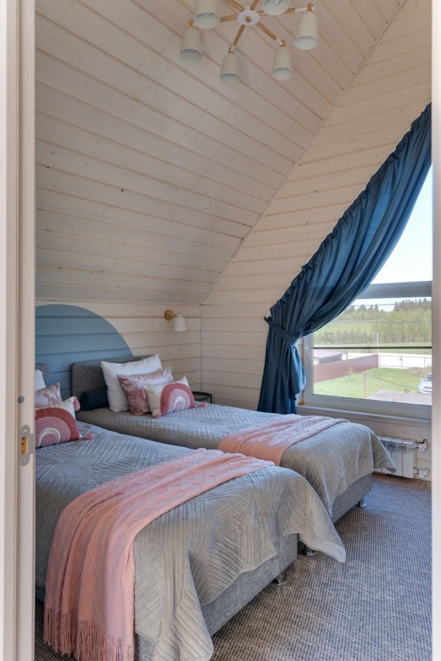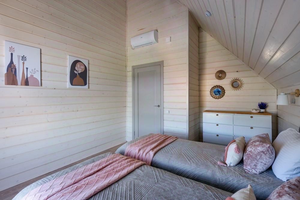 В доме есть все необходимое для проживания 5 взр. + 2 детей: - двуспальная кровать - 1шт, - односпальная кровать 2 шт. (можно соединить в двуспальную кровать), - двухъярусная кровать - 1 шт., - большой угловой диван (раскладывается), - кондиционеры в гостиной и спальнях, - WI-FI и TV.