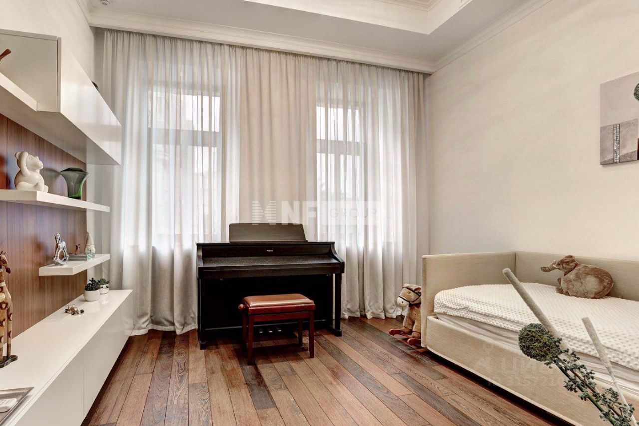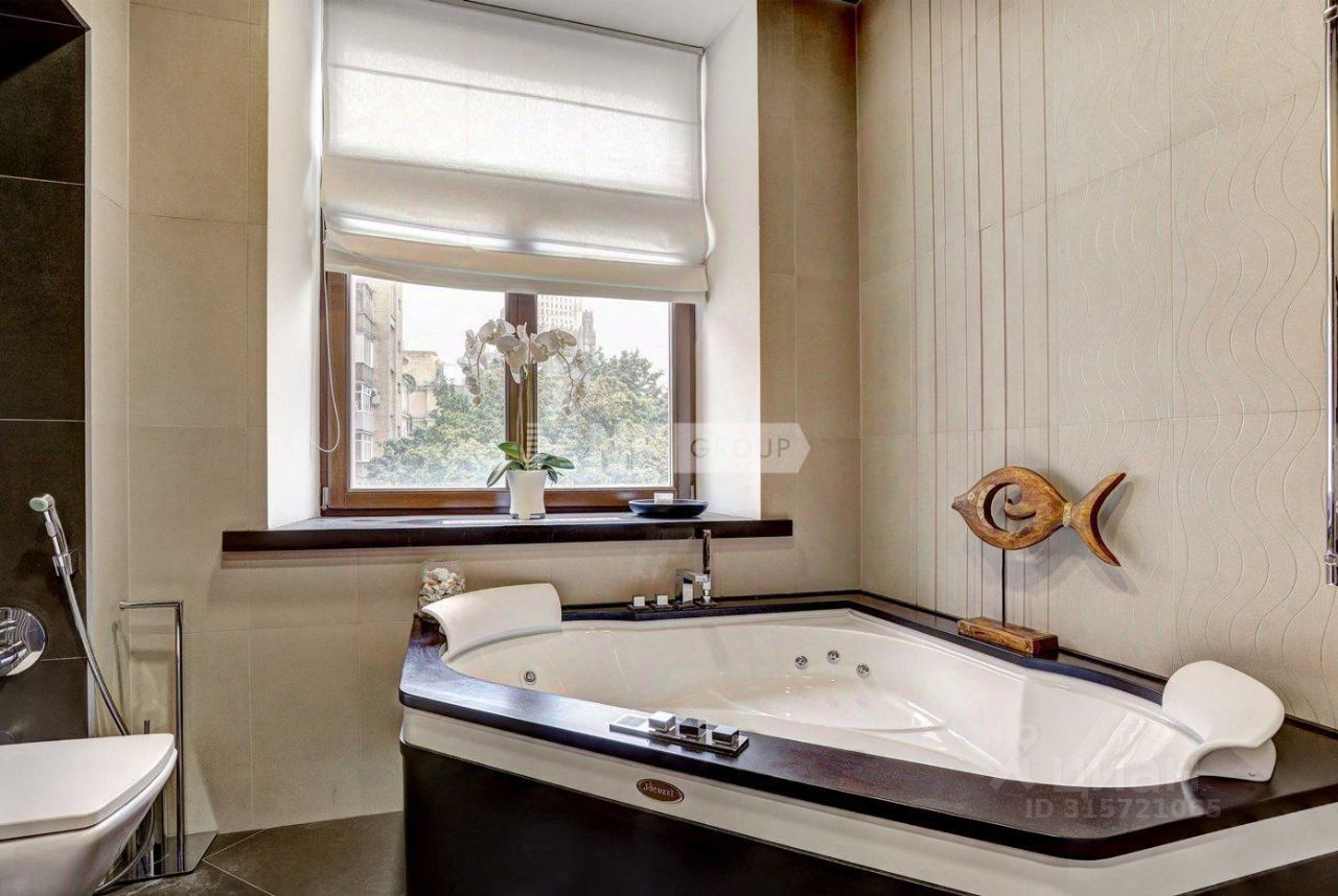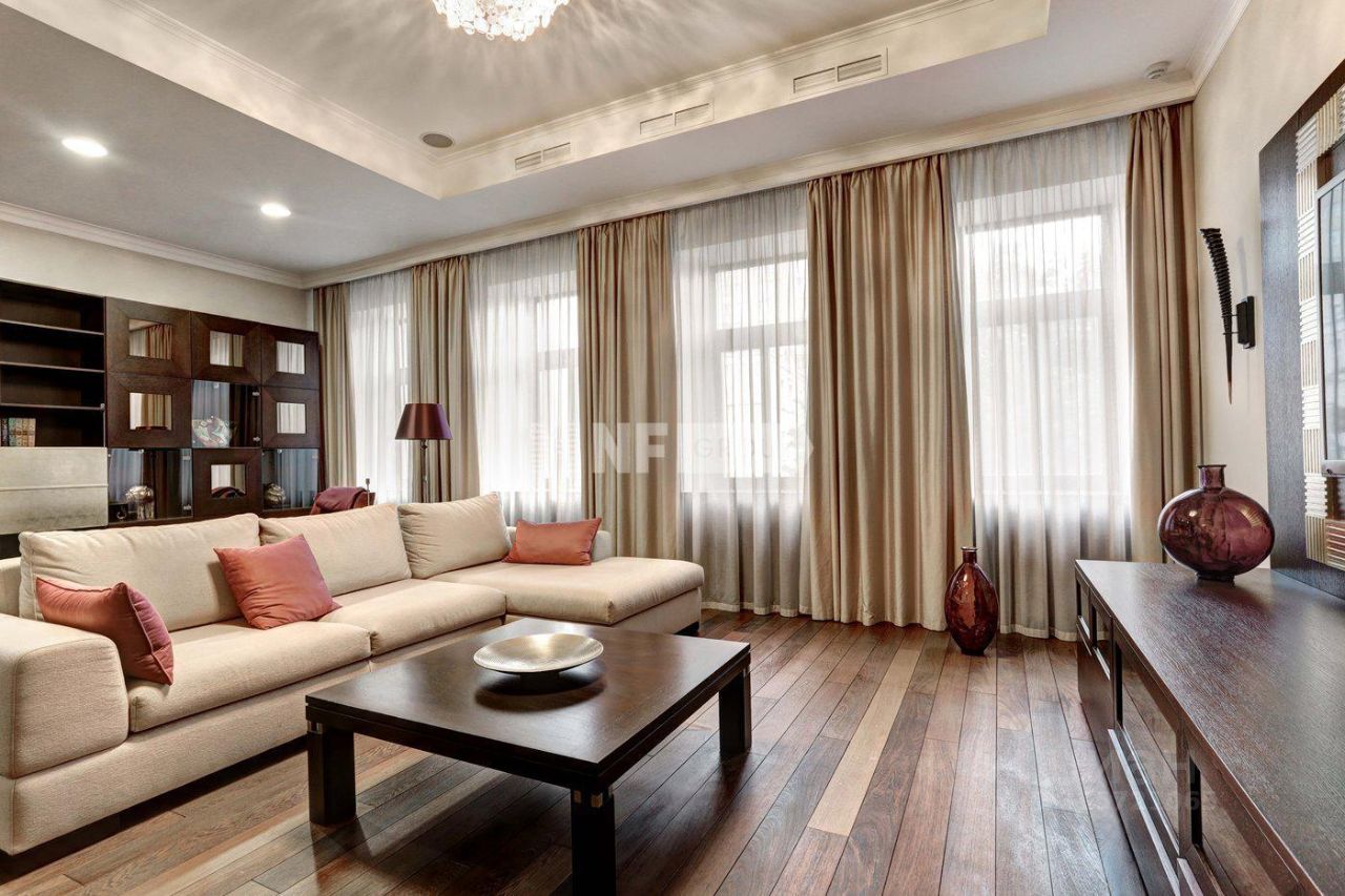 Квартира расположена в клубном доме в Гагаринском переулке. Презентабельный фасад и входная группа, территория огорожена, выполнен ландшафтный дизайн. Круглосуточная охрана, предусмотрен ресепшн и приватная зона отдыха.