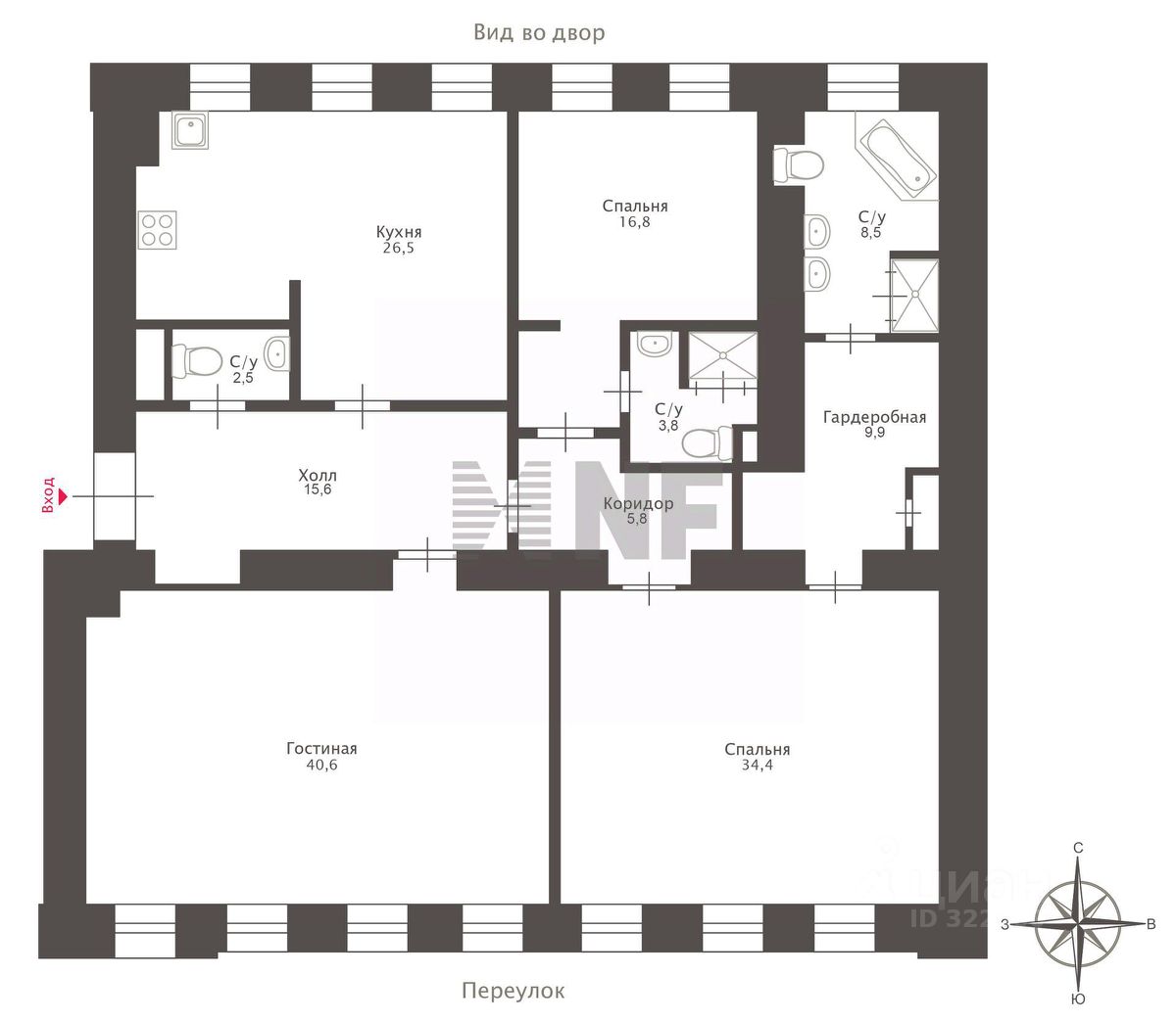 Планировка: просторная гостиная, кухня-столовая, две спальни со своими санузлами, гостевой санузел. При необходимости из гостиной можно сделать третью спальню.