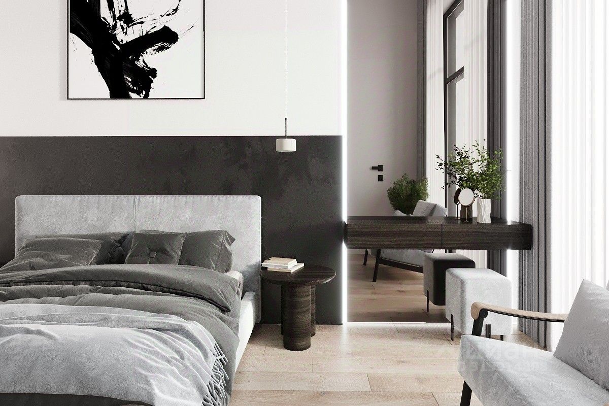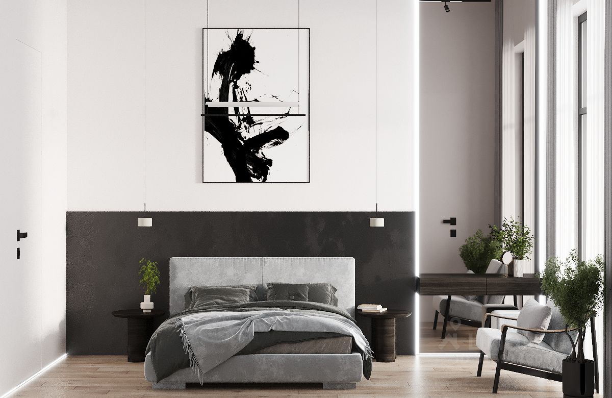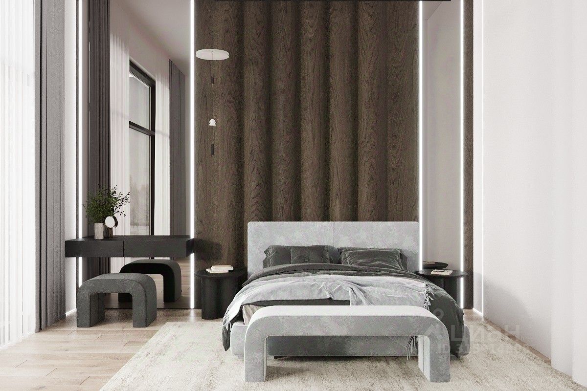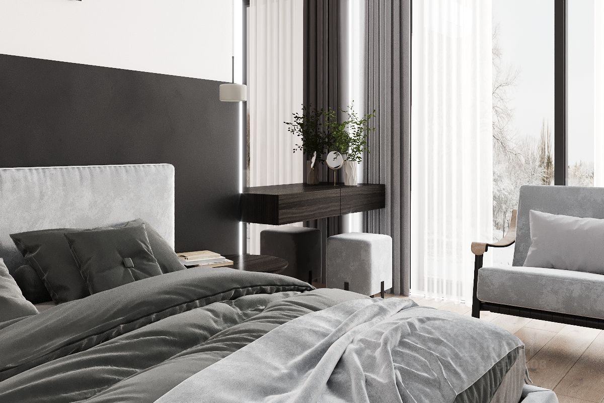 2 этаж - холл, 4 спальни с с/у и гардеробными, кабинет.